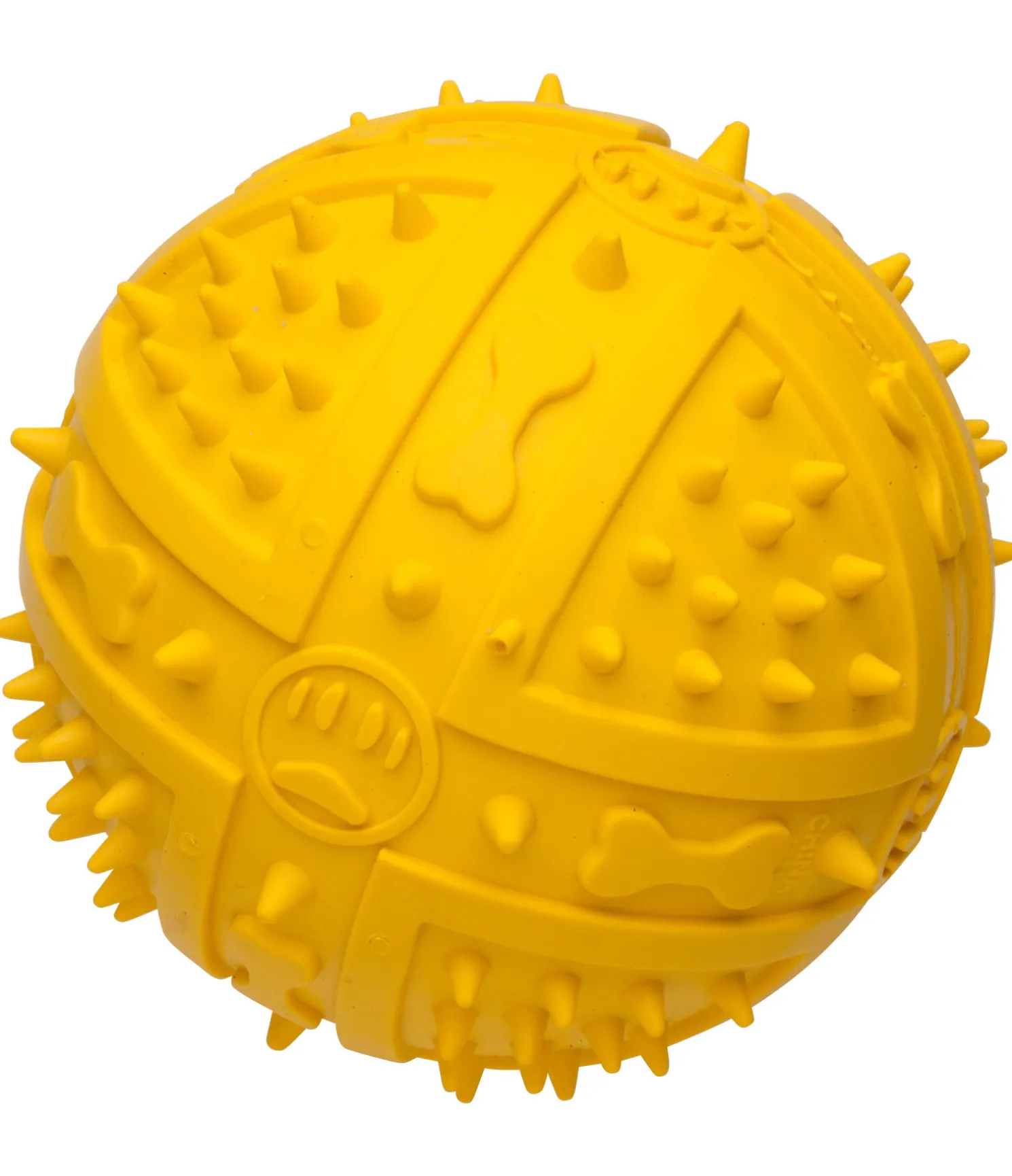 Balle en caoutchouc naturel avec couineur. Diamètre 9 cm.