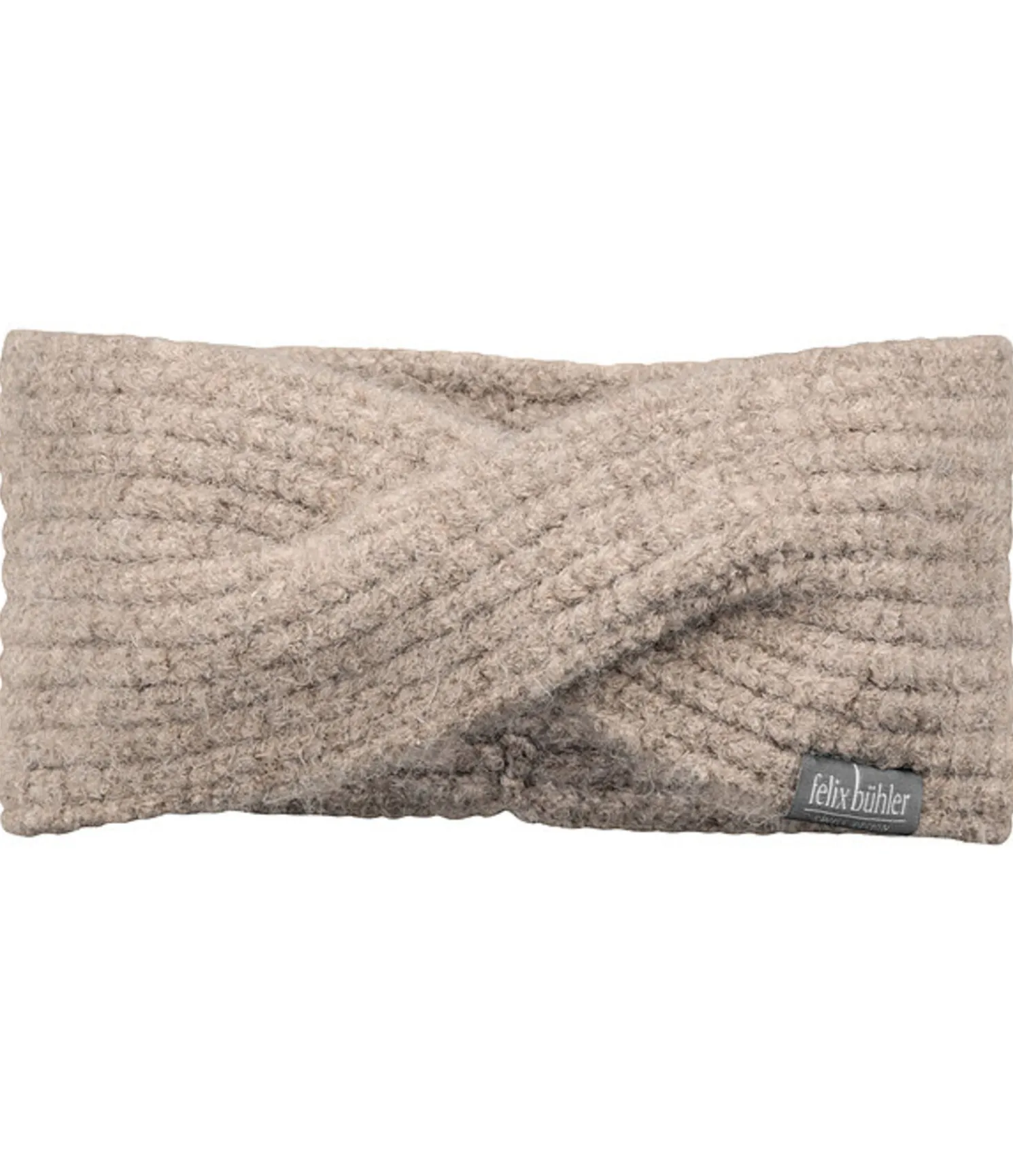 Bandeau extra-doux torsadé devant. Discret badge logo Felix Bühler. 50 % polyester recyclé, 15 % polyester, 13 % nylon, 13 % polyacrylique, 6 % laine, 3 % élasthanne.