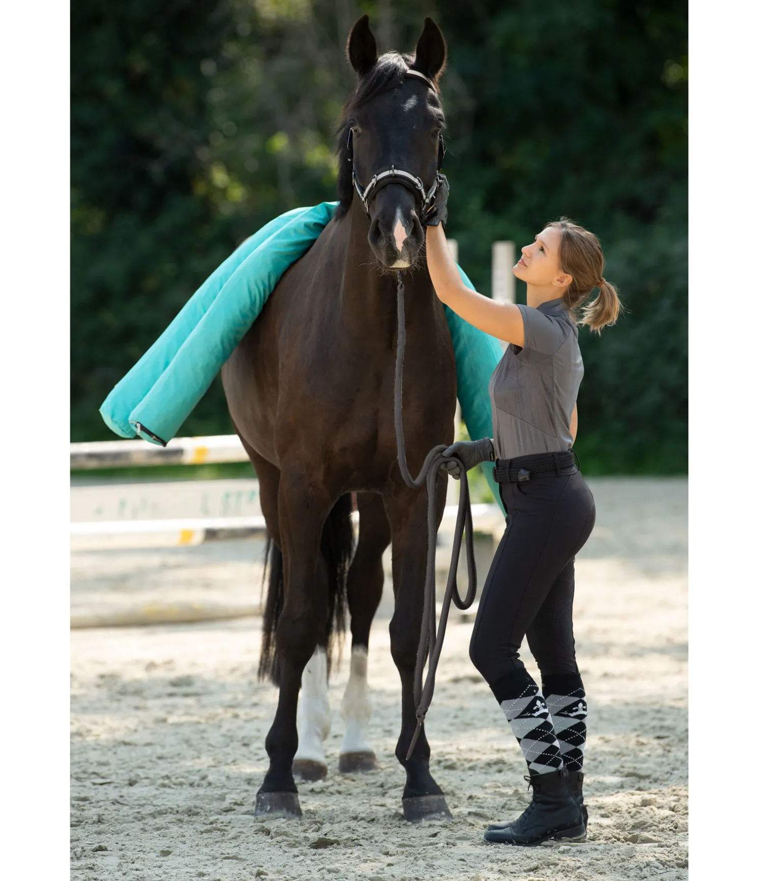 Barre multifonction pour le travail à pied et l’entraînement quotidien. Peut être utilisée comme barre au sol ou délimitation de l’espace de travail. La fermeture à glissière à l’une des extrémités permet de remplir la barre de paille, de mousse, de copeaux de bois, etc. en fonction de l’utilisation. Longueur : 2 m, diamètre : 12 cm. Ce produit doit de préférence être stocké à l’intérieur et doit être protégé de manière appropriée s’il est stocké à l’extérieur. Une exposition continue aux rayons UV et à la chaleur peut provoquer une décoloration de la housse.