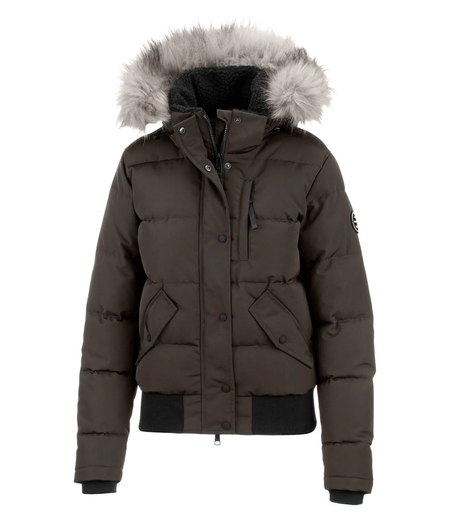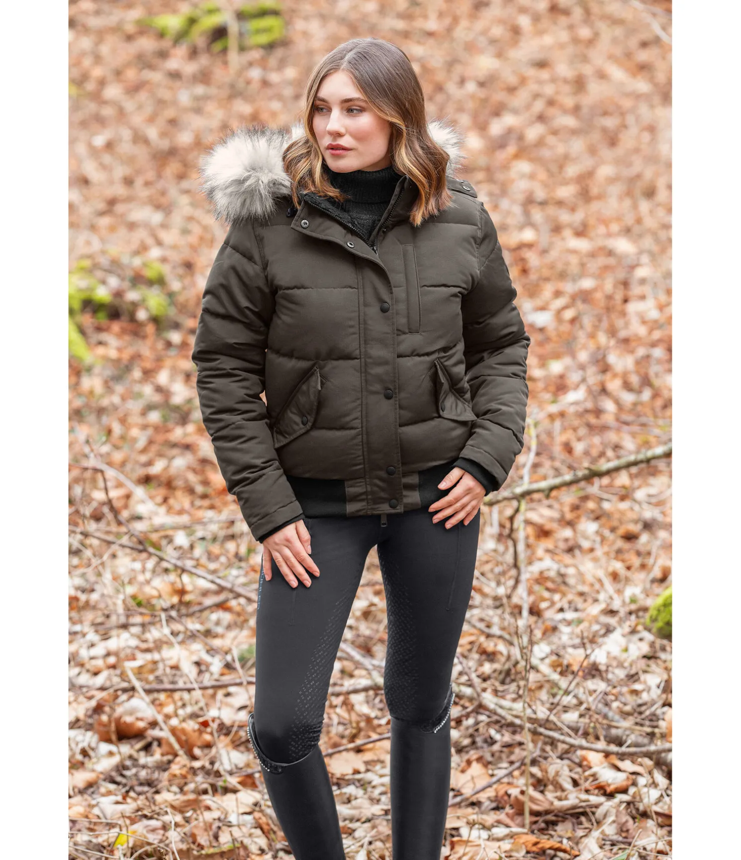 Blouson d’équitation matelassé sportswear, déperlant et coupe-vent. Capuche amovible et réglable avec bordure en fourrure synthétique amovible. Garnissage chaud imitation duvet. Doublure en sherpa à l’intérieur du col et de la capuche. Fermeture à glissière double sens dissimulée avec protège-menton. Deux poches latérales avec boutons- pression et une poche zippée sur la poitrine. Finition en bord-côte en bas des manches et à la taille. Motifs gaufrés discrets à l’intérieur. Poches doublées en polaire. 100 % Polyester.