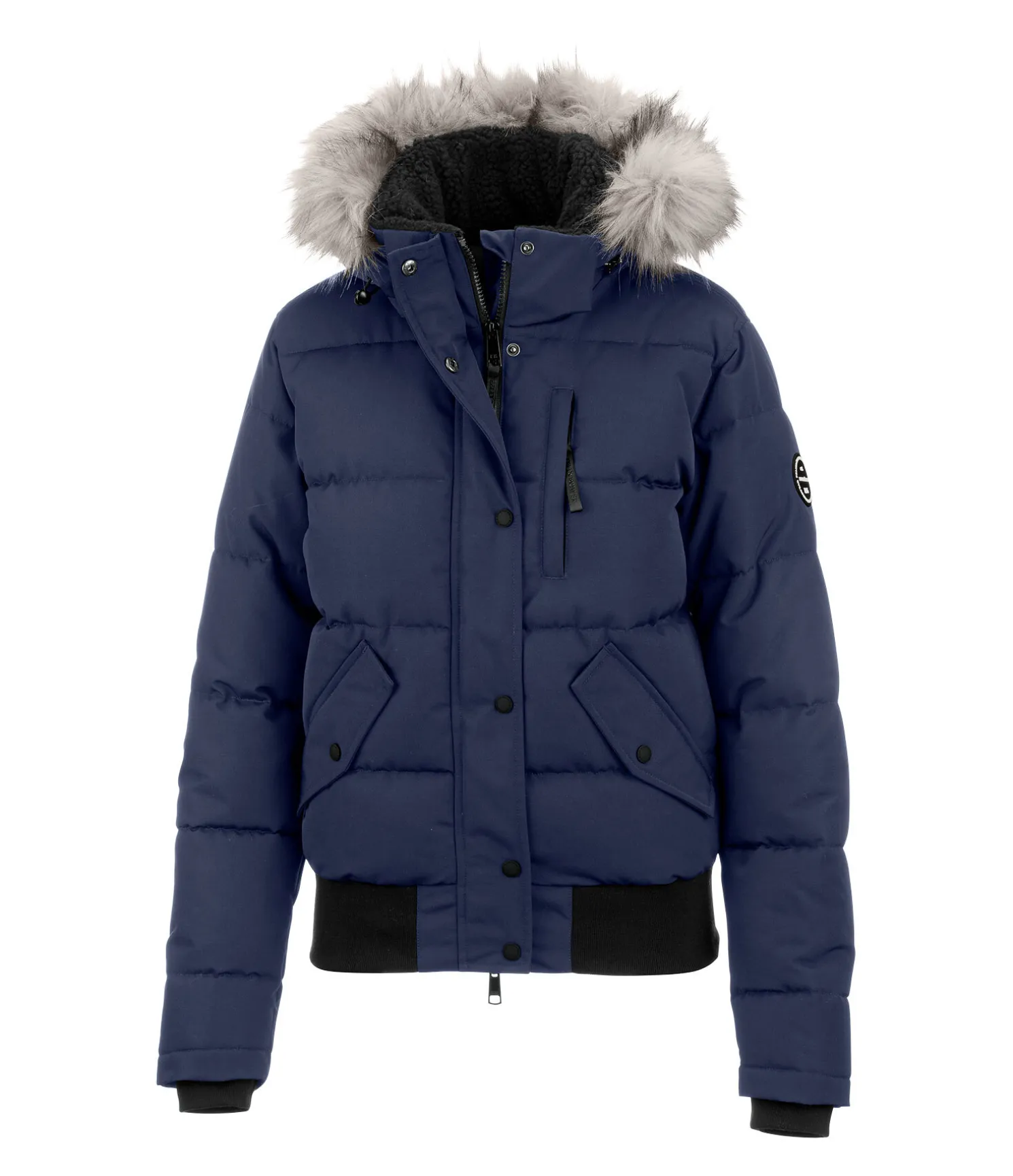 Blouson d’équitation matelassé sportswear, déperlant et coupe-vent. Capuche amovible et réglable avec bordure en fourrure synthétique amovible. Garnissage chaud imitation duvet. Doublure en sherpa à l’intérieur du col et de la capuche. Fermeture à glissière double sens dissimulée avec protège-menton. Deux poches latérales avec boutons- pression et une poche zippée sur la poitrine. Finition en bord-côte en bas des manches et à la taille. Motifs gaufrés discrets à l’intérieur. Poches doublées en polaire. 100 % Polyester.