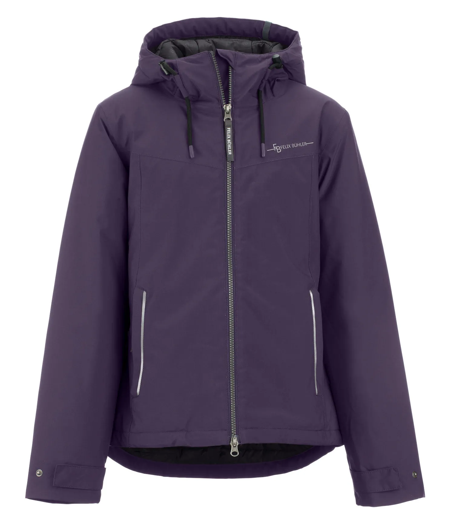 Blouson d’équitation court très technique avec capuche. Garnissage chaud en imitation duvet. Très imperméable (10.000 mm), coupe-vent et respirant. 2 poches zippées, fermeture à glissière double sens avec sous-patte, taille réglable, capuche ajustable par cordon de serrage, bas des manches réglable. Imprimé Felix Bühler réfléchissant sur la poitrine. 100 % polyester, doublure 100 % nylon.