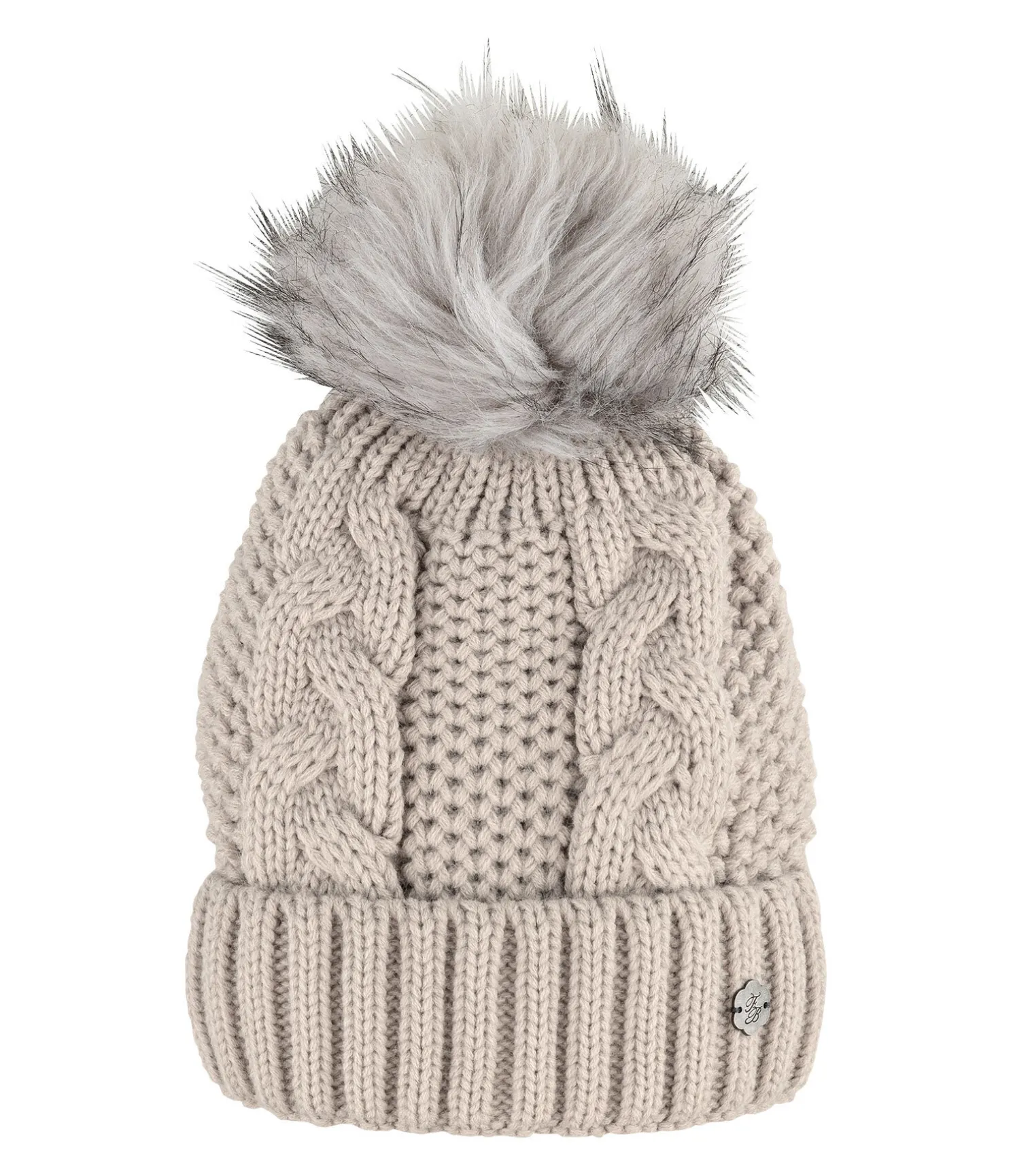 Bonnet à pompon confortable en maille torsadée. Doublure en polaire extra-douce. Extérieur 100 % polyacrylique, intérieur 100 % polyester. Lavage à la main.