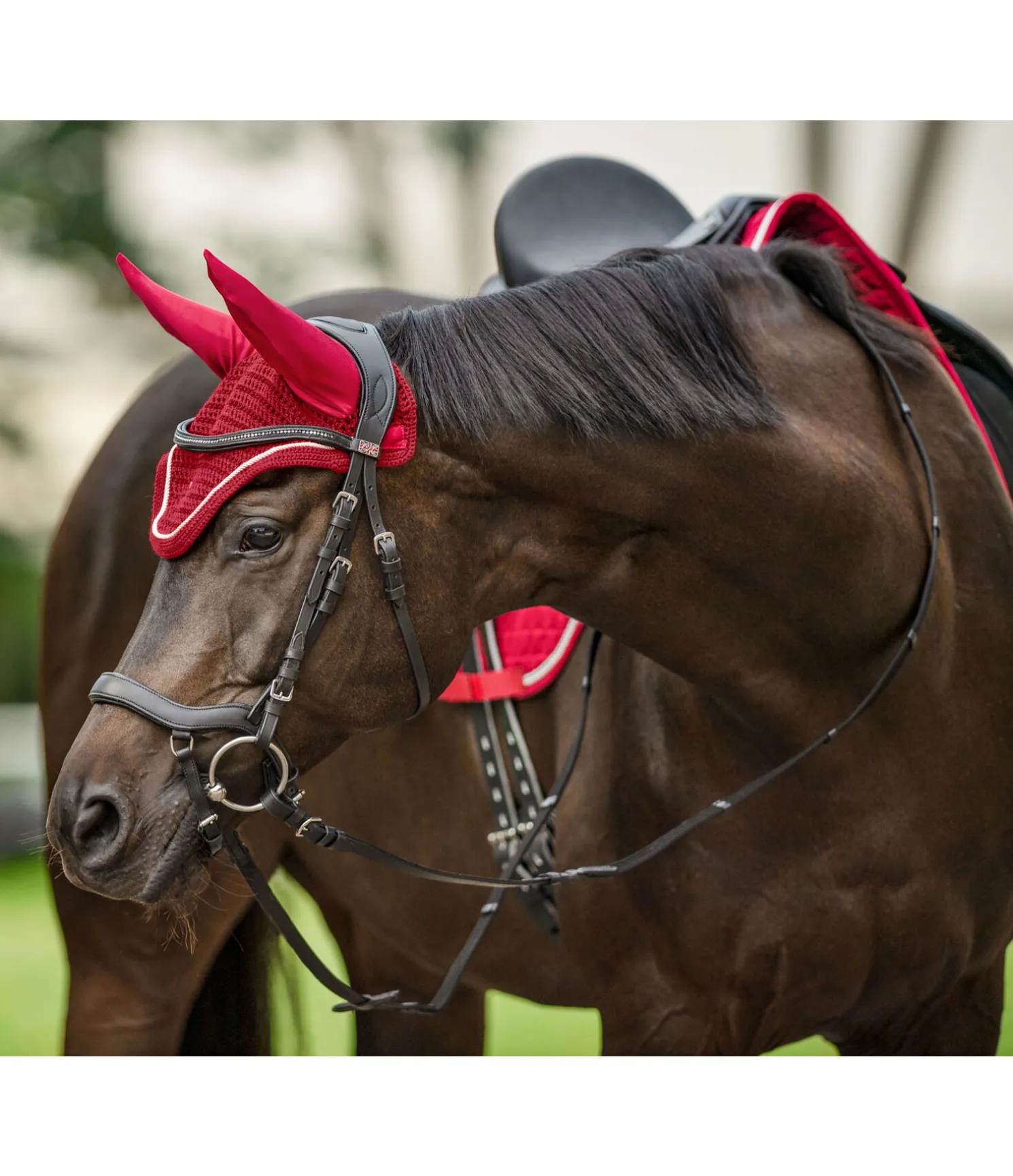 Bonnet anti-mouches classique en maille crochetée avec cordon décoratif satiné discret de couleur contrastante. Matière extensible aux oreilles. Petite plaque argentée filigrane avec logo gravé. Maille 100 % polyester, matière extensible 97 % polyester, 3 % élasthanne.