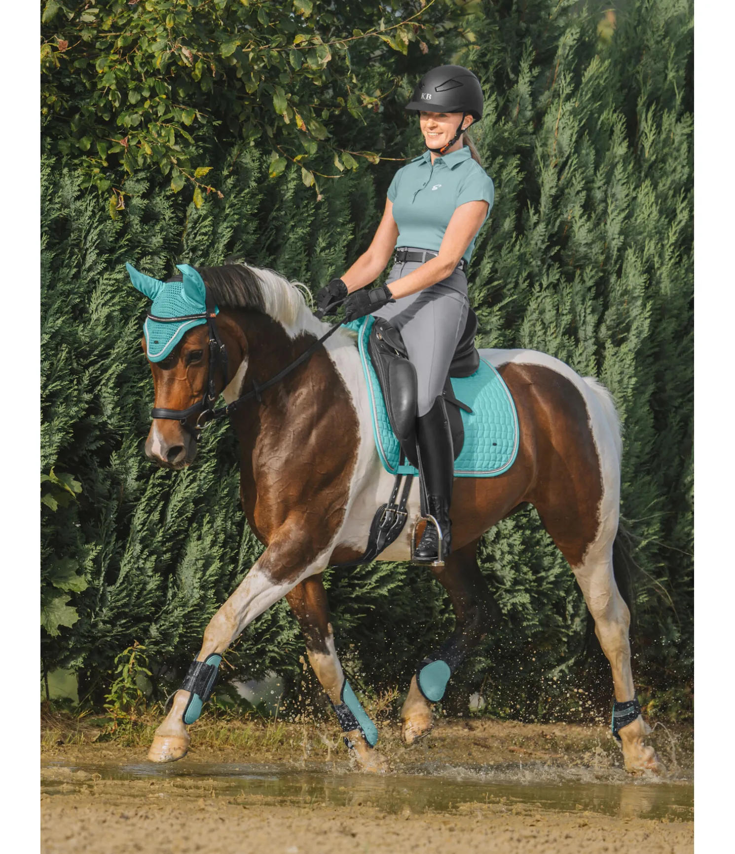 Bonnet anti-mouches classique en maille crochetée avec cordon décoratif satiné discret de couleur contrastante. Matière extensible aux oreilles. Petite plaque argentée filigrane avec logo gravé. Maille 100 % polyester, matière extensible 97 % polyester, 3 % élasthanne.