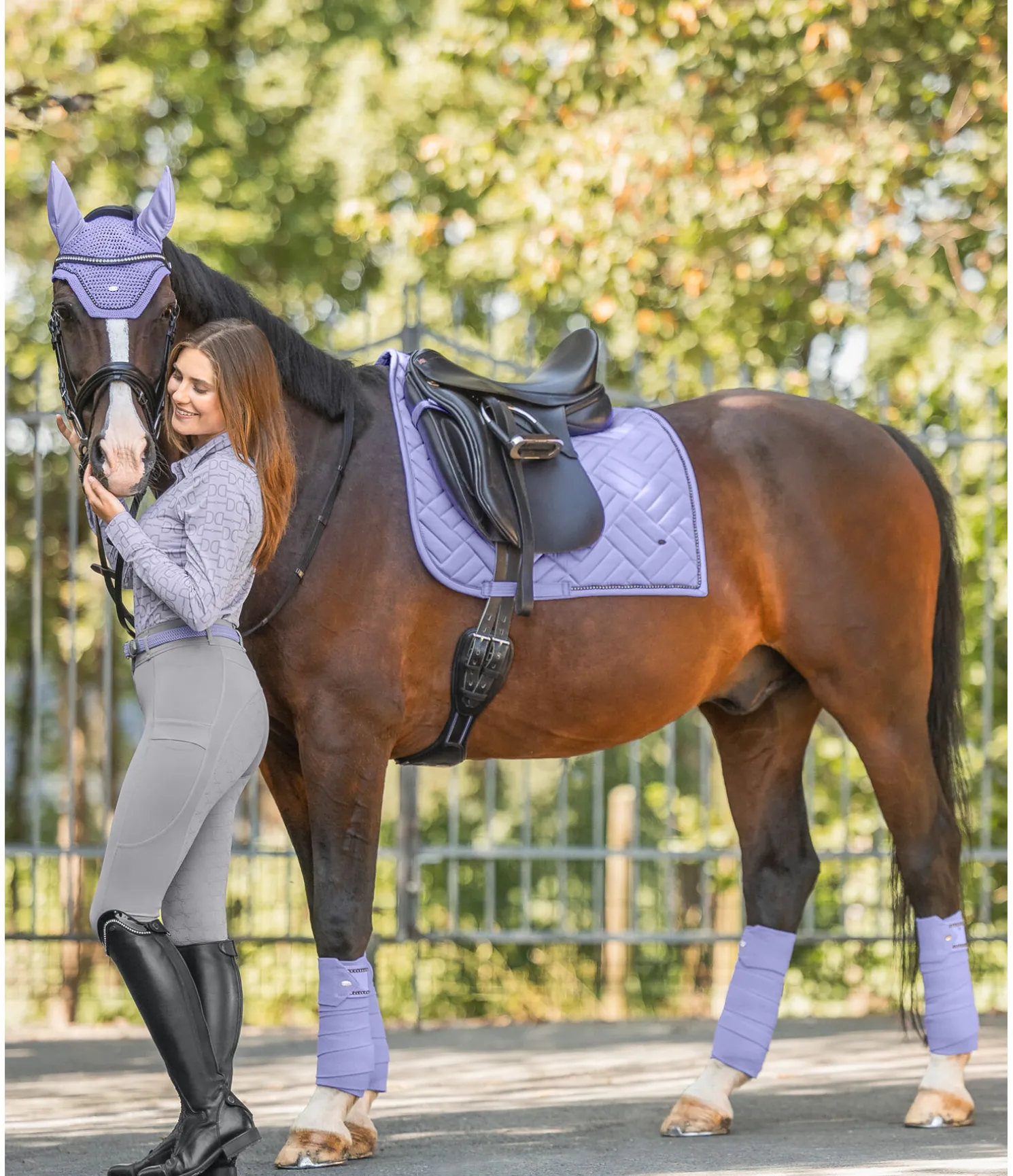 Élégant bonnet anti-mouches avec strass. Petit médaillon discret avec logo gravé. Matière extensible aux oreilles. Deux pattes auto-agrippantes permettant de fixer le bonnet à la têtière du bridon. Bonnet 100 % polyester, matière extensible 97 % polyester, 3 % élasthanne.