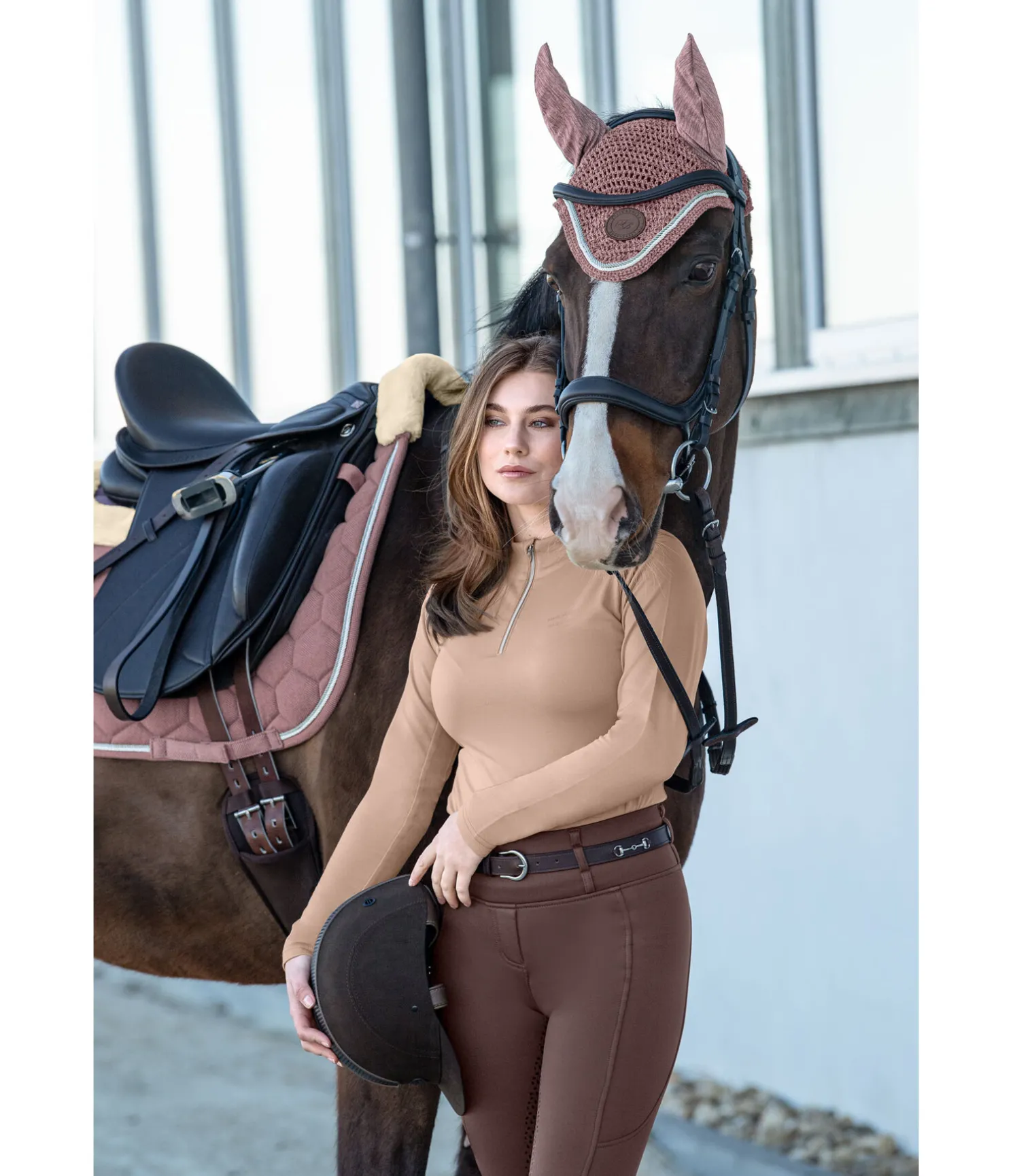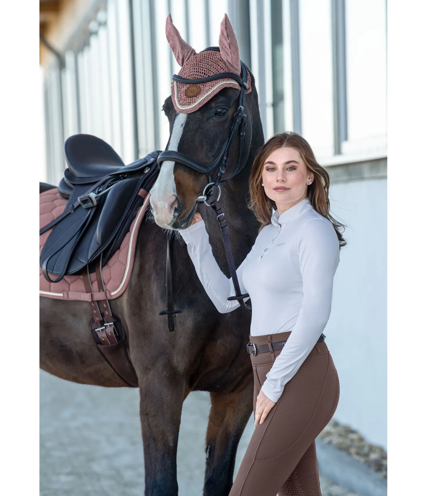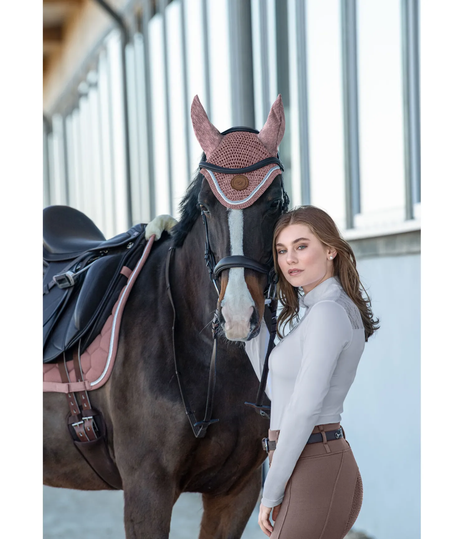 Bonnet anti-mouches classique en maille crochetée à l’aspect chiné, avec une matière extensible aux oreilles pour un confort optimal. Bordure ornée de deux élégants cordons décoratifs et logo en velours synthétique embossé. 100 % polyester.