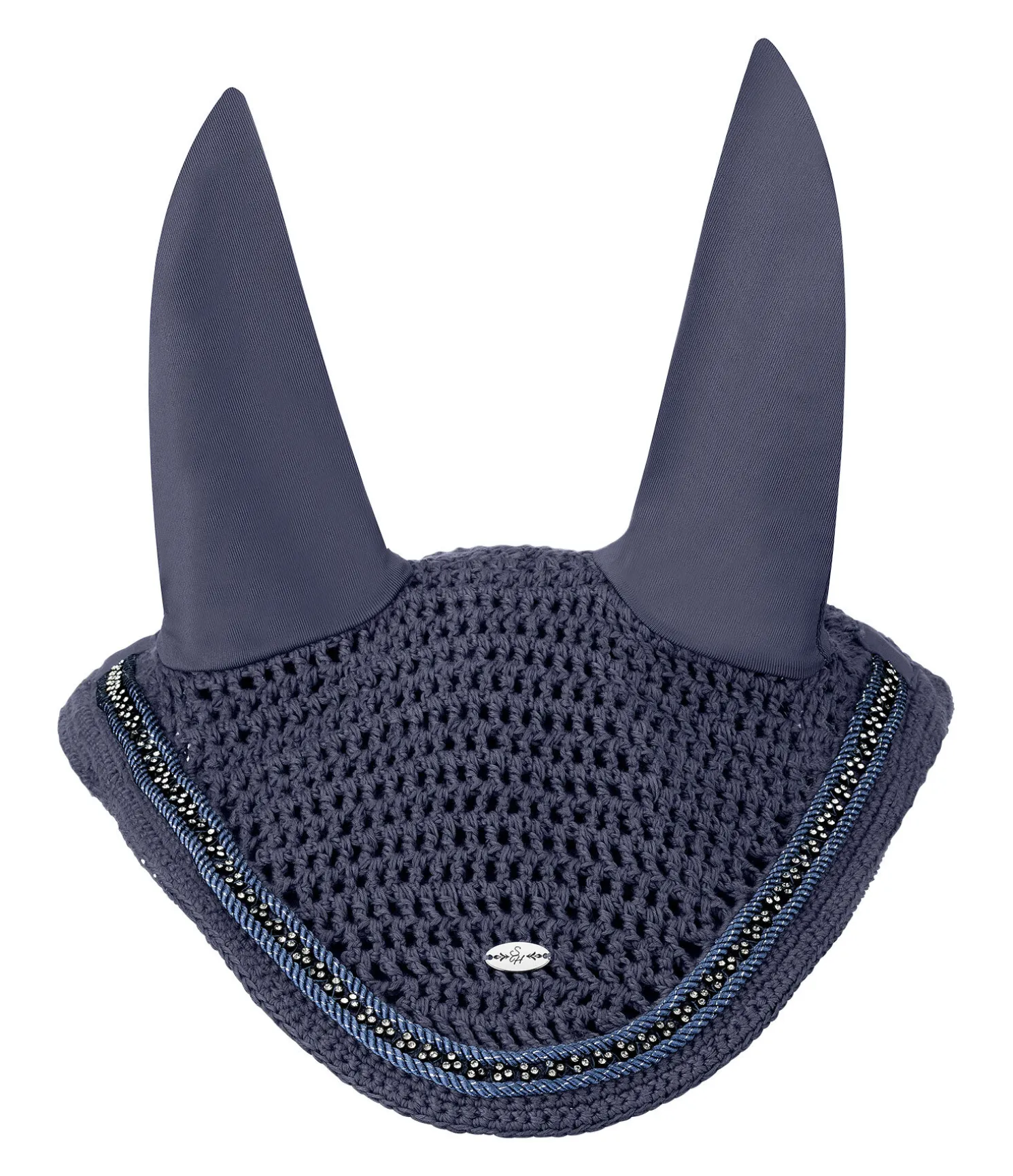 Bonnet anti-mouches en large maille crochetée orné de petits strass et d’un double cordon décoratif brillant. Matière extensible aux oreilles pour un confort optimal et plaque logo filigrane argentée. Bonnet 100 % polyester, oreilles 88 % polyester, 12 % élasthanne.