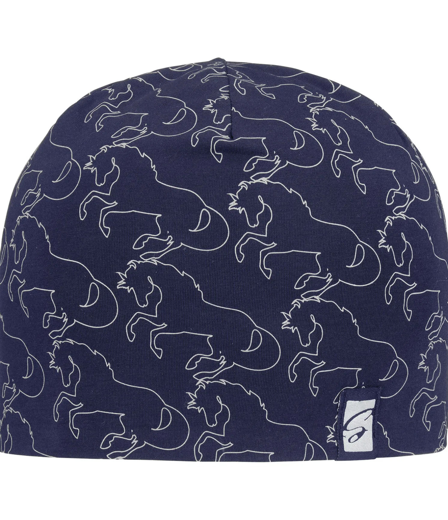 Bonnet fin pour enfant en jersey avec imprimé réfléchissant et logo STEEDS. Passe parfaitement sous le casque, réversible. 65 % coton, 35 % polyester.