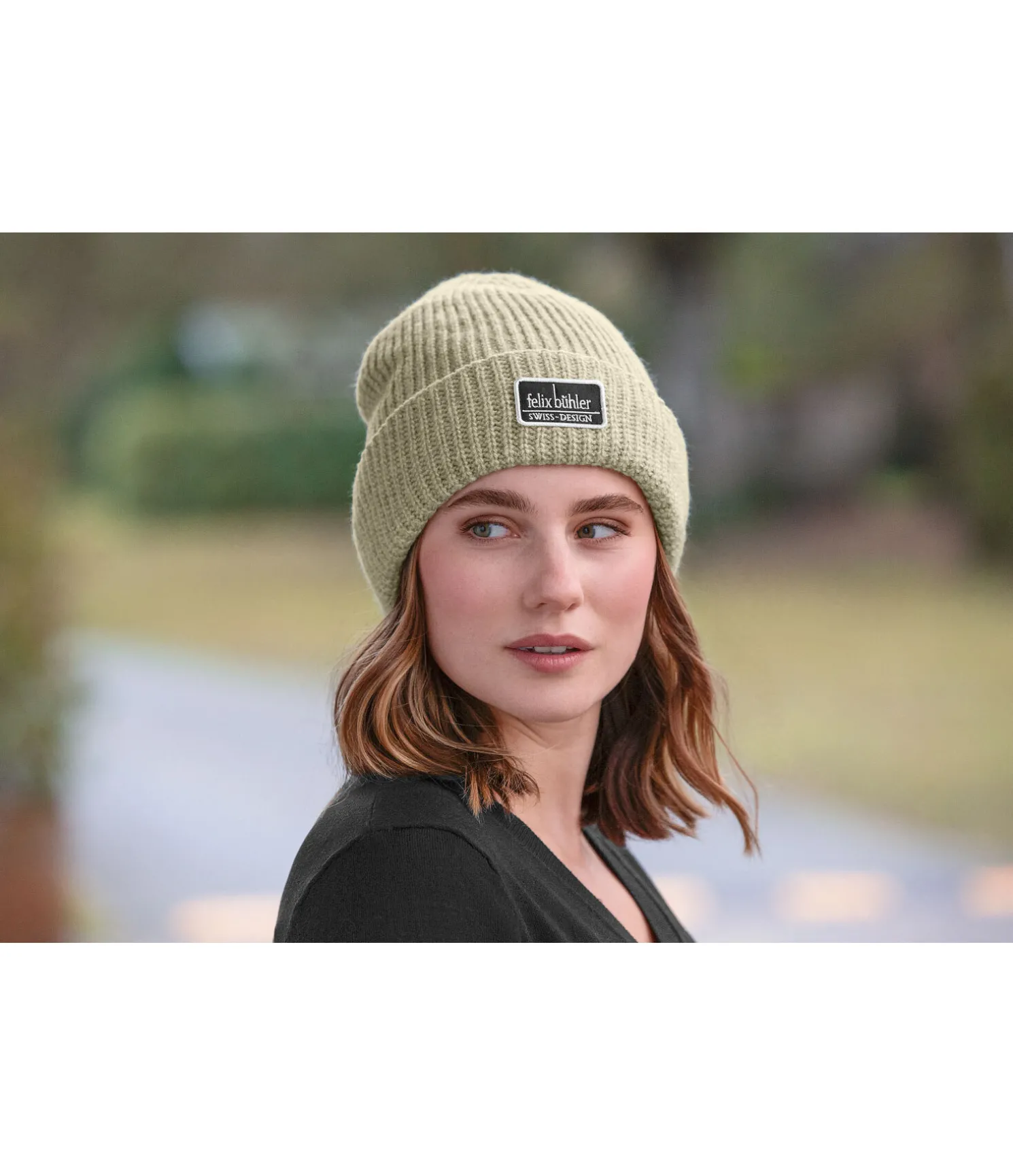 Bonnet en maille côtelée, tendance et confortable. Badge logo Felix Bühler à l’avant. Intérieur entièrement doublé en polaire extra douce. Extérieur 74 % polyacrylique, 23 % polyamide, 3 % élasthanne, intérieur 100 % polyester. Lavable à la main.