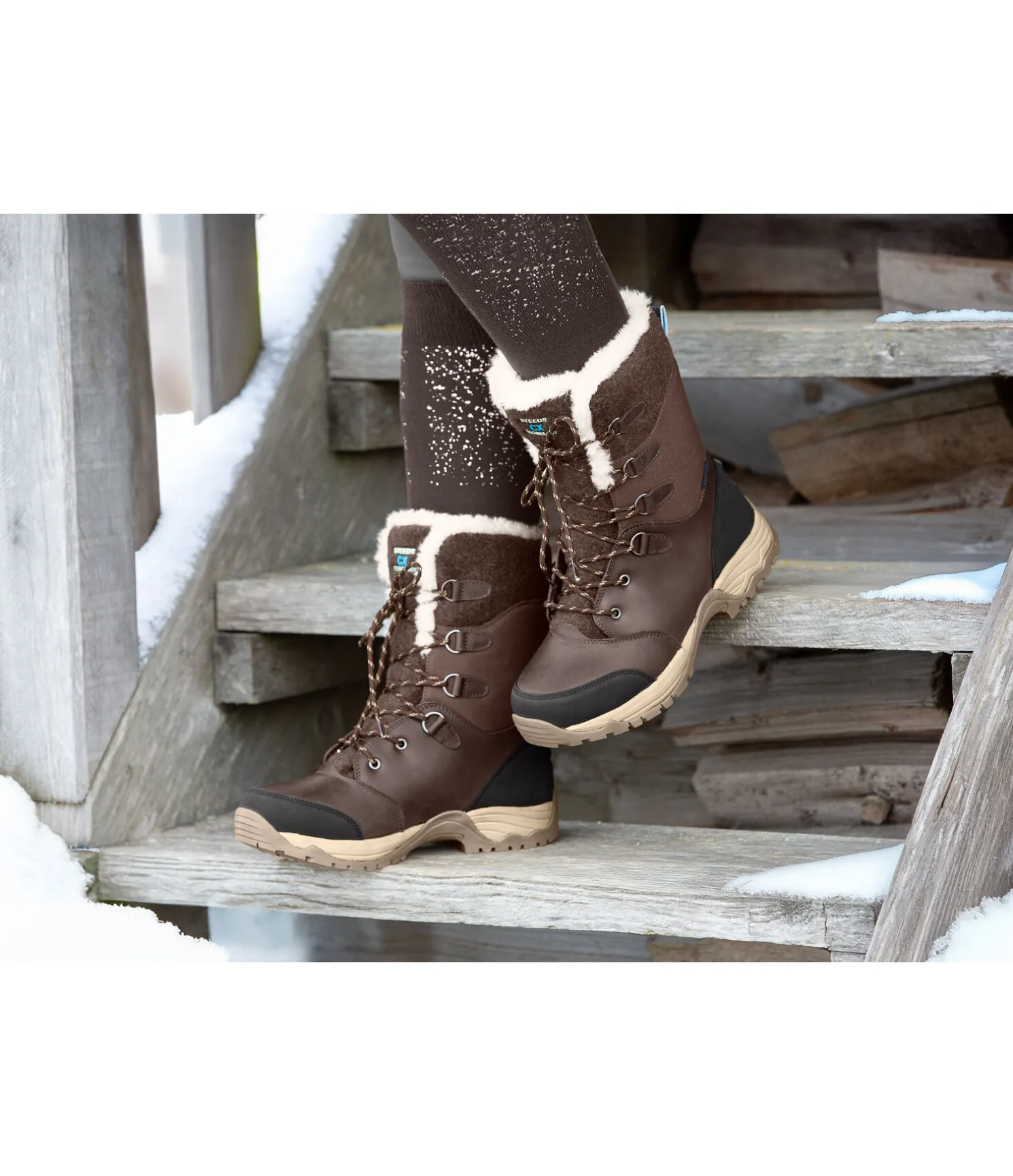 Bottes d’hiver imperméables avec coque en cuir de vachette huilé pleine fleur et tige en matière textile polaire. Doublure complète en polaire Teddy douillette et chaude (100 % polyester). La membrane imperméable ainsi que la languette cousue sur les côtés empêchent la neige et l’eau de pénétrer dans la chaussure. La semelle intérieure CX Technology possède les meilleures propriétés d’amortissement et assure un confort optimal. Le système de laçage rapide permet un chaussage et déchaussage rapide. Autres caractéristiques : renfort au talon et aux orteils, taquet d’éperon et élément réfléchissant à l’arrière.