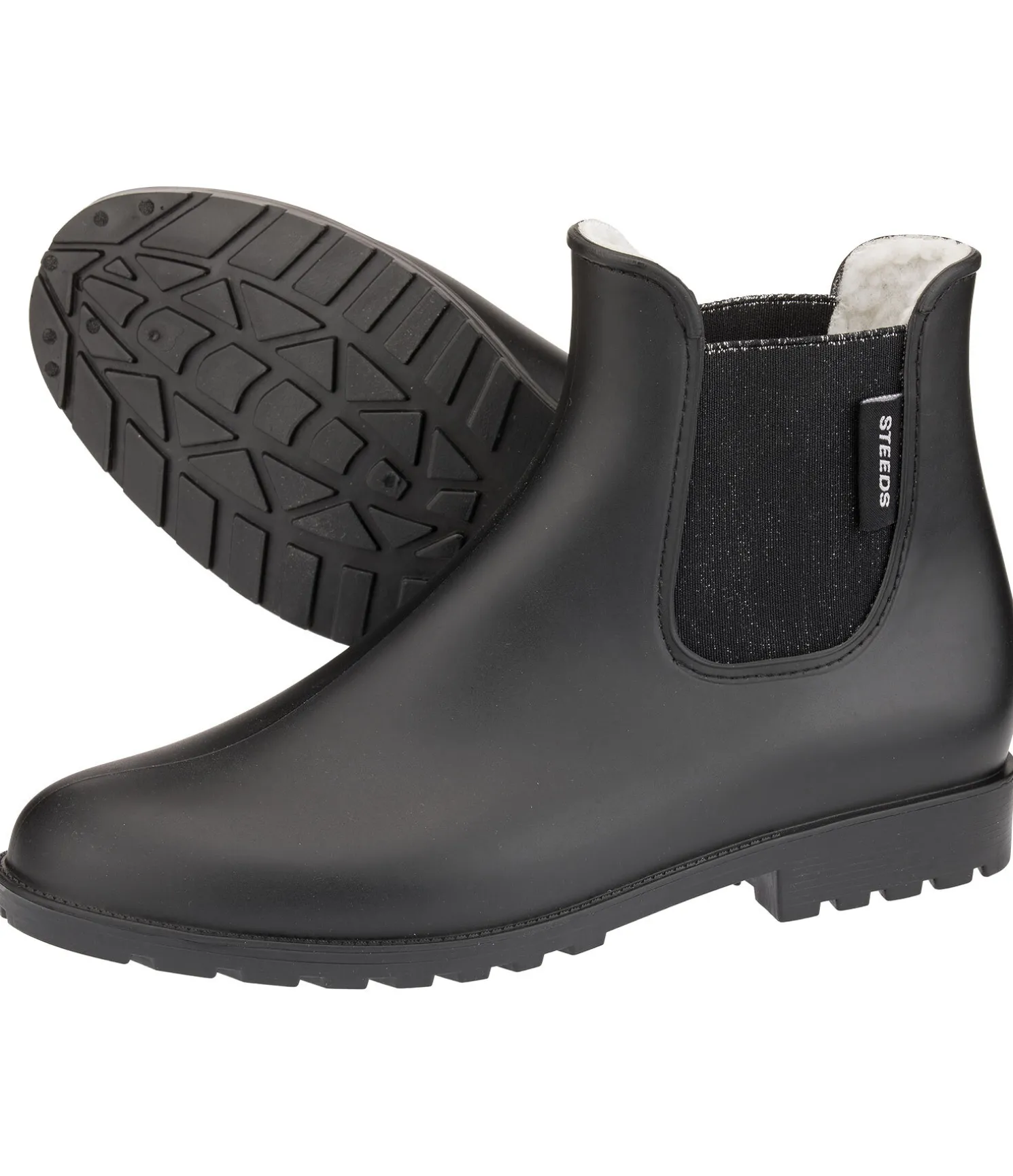Bottines d’hiver en PVC avec doublure chaude en polaire Teddy (100 % polyester). Avec talon cavalier et semelle extérieure résistante. Les empiècements élastiques latéraux permettent un enfilage facile.