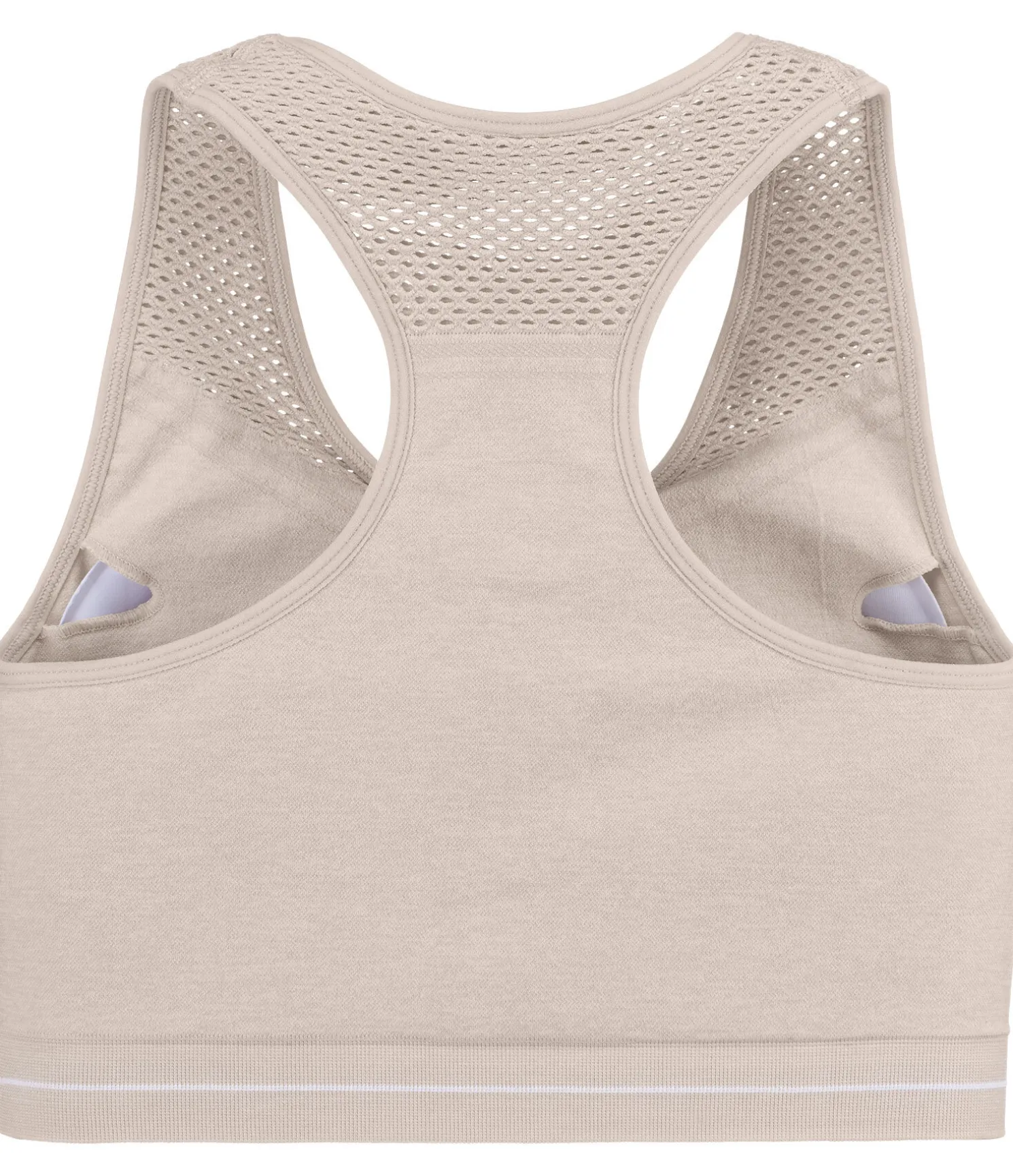 Brassière de sport avec coques amovibles. Matière respirante à séchage rapide. Dos nageur, large bande élastique sous la poitrine, empiècements en mesh. Soutien moyen. 52 % nylon, 40 % polyester, 8 % élasthanne.