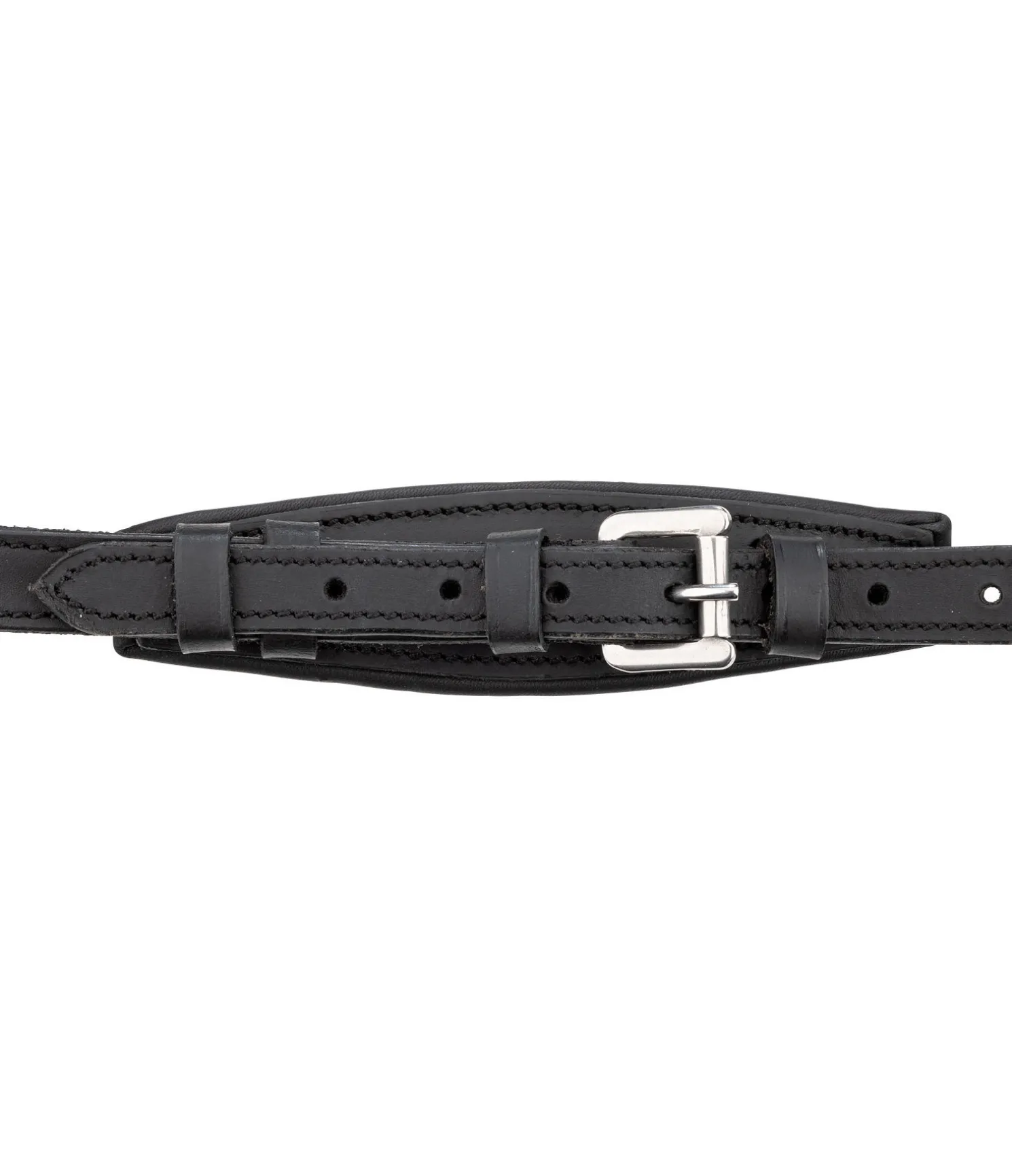 Bridon confortable en cuir gras souple. Muserolle combinant les effets d’une muserolle française et d’une muserolle allemande. Les anneaux de fixation latéraux du noseband permettent d’éviter les pressions sur l’os du nez, facilitent la fermeture et offrent davantage de liberté aux naseaux. Têtière anatomique extra-large, muserolle, pad de menton et frontal avec doublure extra-moelleuse en cuir véritable. Cuir gras. Bouclerie argentée. Sans rênes, sans mors.