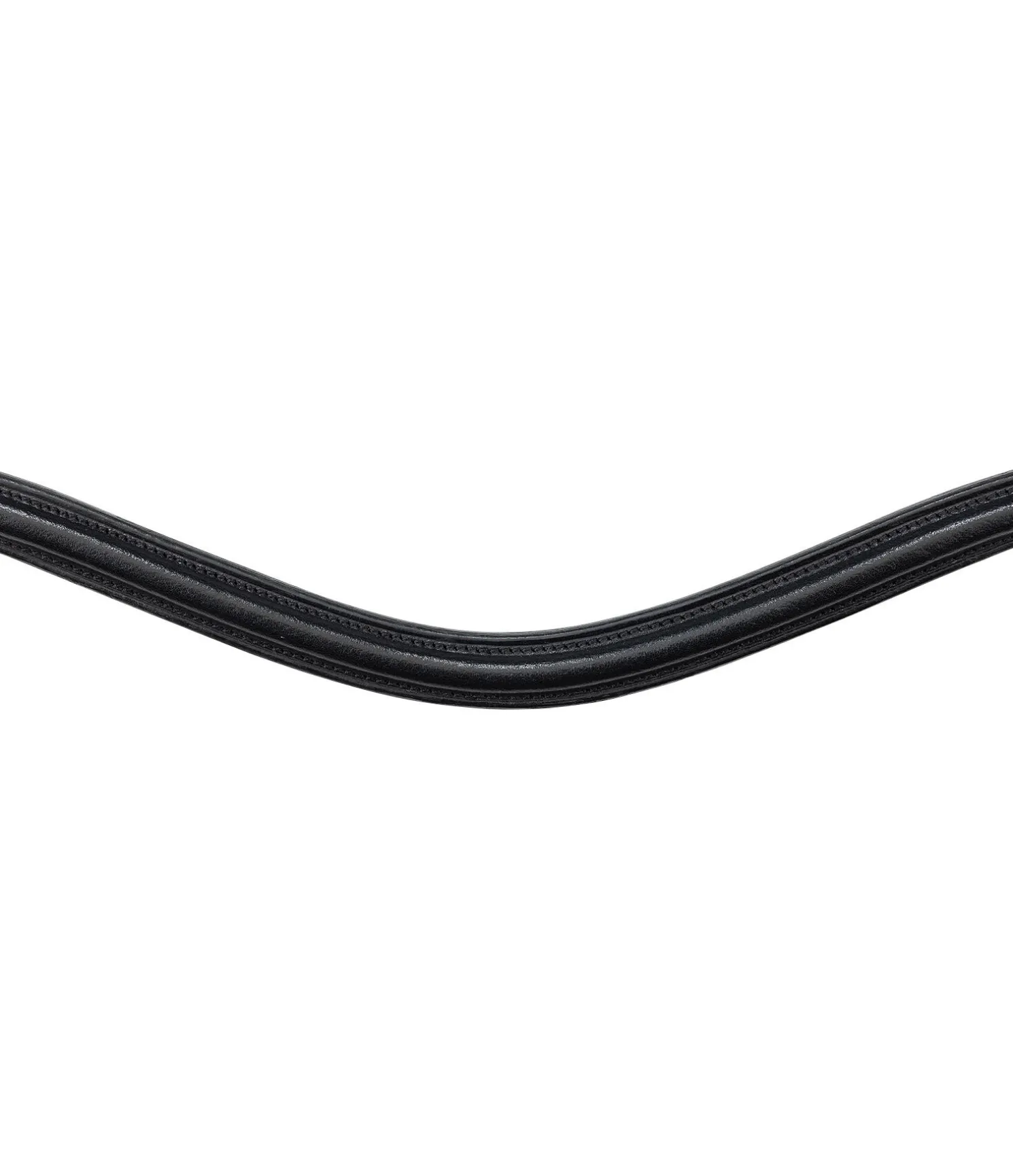 Élégant bridon en cuir avec têtière anatomique innovante assurant un soulagement optimal de la pression dans la zone de la nuque grâce à sa doublure douce et sa découpe large aux oreilles. La large muserolle française combinée est également doublée. Frontal vague classique. Bouclerie argentée. Avec rênes sangle, sans mors.