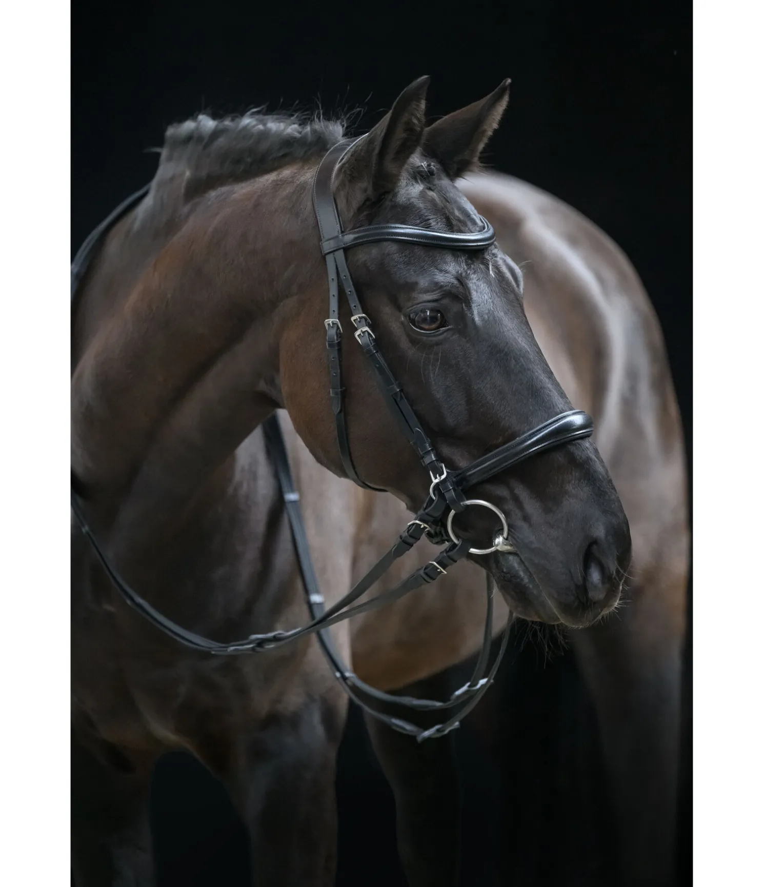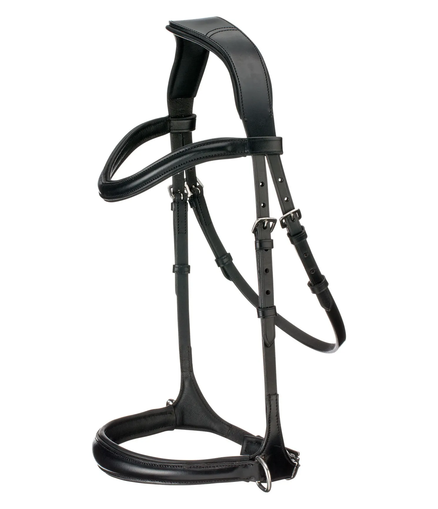 Bridon polyvalent en cuir véritable pouvant être utilisé de plusieurs façons. Idéal pour la transition vers l’équitation sans mors. Muserolle, têtière et frontal vague anatomiques pour une meilleure répartition des pressions. Sous-gorges et attaches de mors amovibles. Bouclerie argentée. Sans rênes, sans mors.
