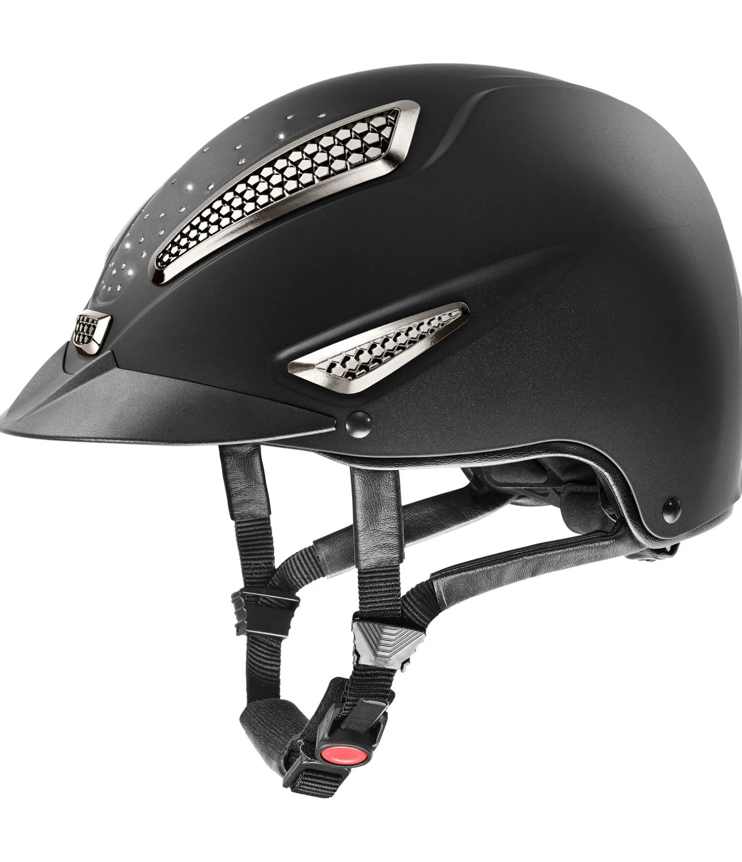 Le casque d’équitation uvex perfexxion III grace est la parfaite fusion de l’élégance, du confort et de la sécurité. Ce casque convainc par ses 38 cristaux Swarovski étincelants, ses grilles d’aération chromées et ses protège-lanières en synthétique de grande qualité. Possède également toutes les caractéristiques du casque d’équitation uvex perfexxion III. Certifié selon la norme EN1384:2023.