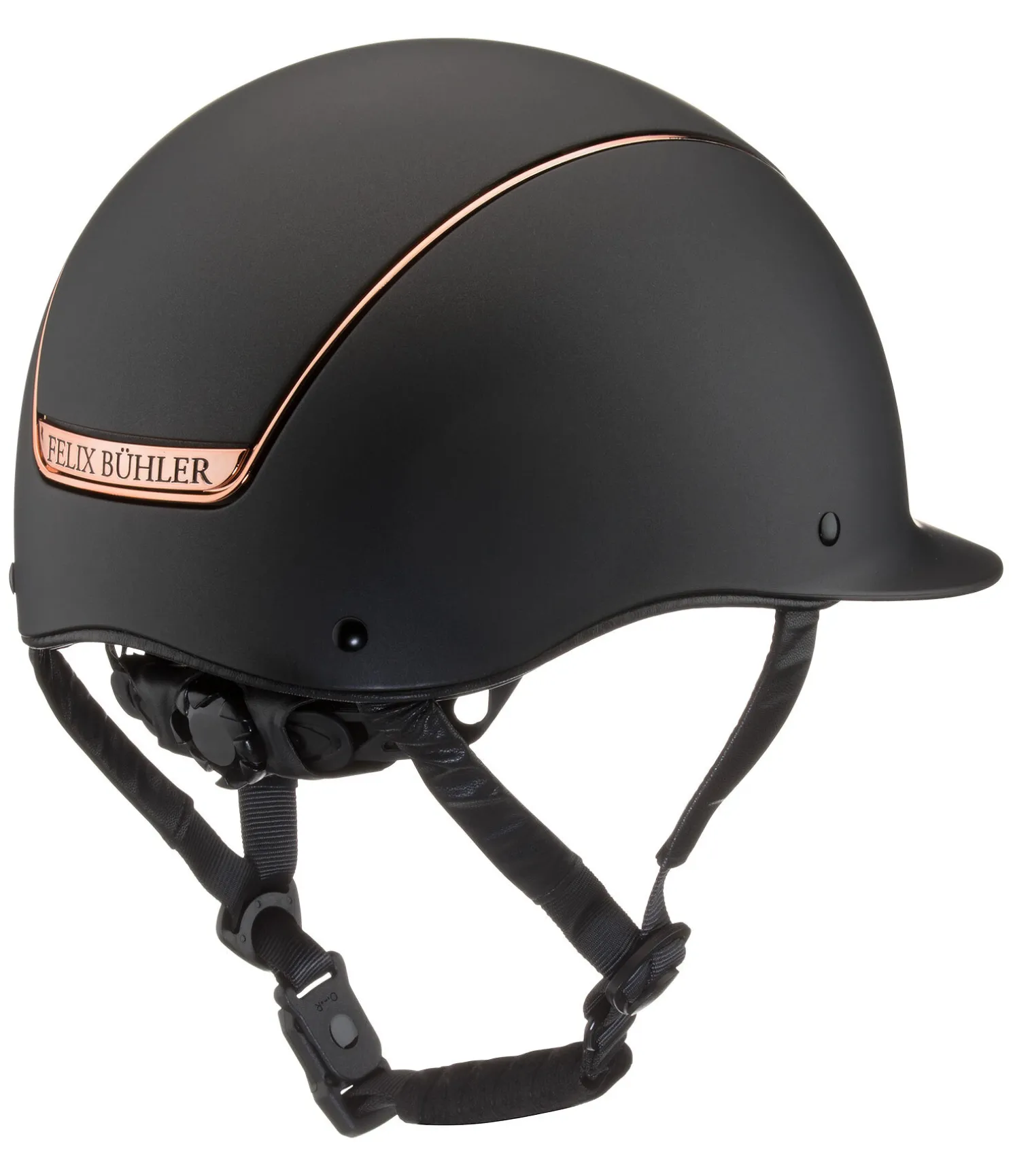 Avec ses nombreuses innovations, ce casque d’équitation Felix Bühler haut de gamme se distingue par sa légèreté et son design élégant. Pour garantir un niveau de sécurité maximal, ce casque est doté de la technologie Hardshell avec une coque extérieure résistante aux chocs. Les ouvertures à l’avant assurent une aération optimale sur l’ensemble de la tête grâce à des canaux de ventilation internes passant de l’avant à l’arrière du casque. La doublure intérieure absorbant l’humidité est amovible et lavable à 30°C. Le casque dispose d’une fermeture magnétique innovante pour une ouverture à une seule main, facile et rapide. Grâce à la fonction Easy-Lock/No-Unlock, l’aimant verrouille l’attache dès que la boucle est approchée du fermoir. L’ouverture accidentelle du fermoir en tirant ou en tournant la boucle est impossible. Celle-ci ne peut être déverrouillée qu’en appuyant fermement sur le bouton Unlock situé sur le côté. La molette à l’arrière du casque permet un ajustement à la circonférence de la tête précis au millimètre près. Les sangles recouvertes soulignent le design raffiné du casque et disposent de coussinets au niveau de la nuque et du menton pour garantir un confort de port optimal au cavalier. Ce casque d’équitation est certifié selon la norme EN1384:2023.
