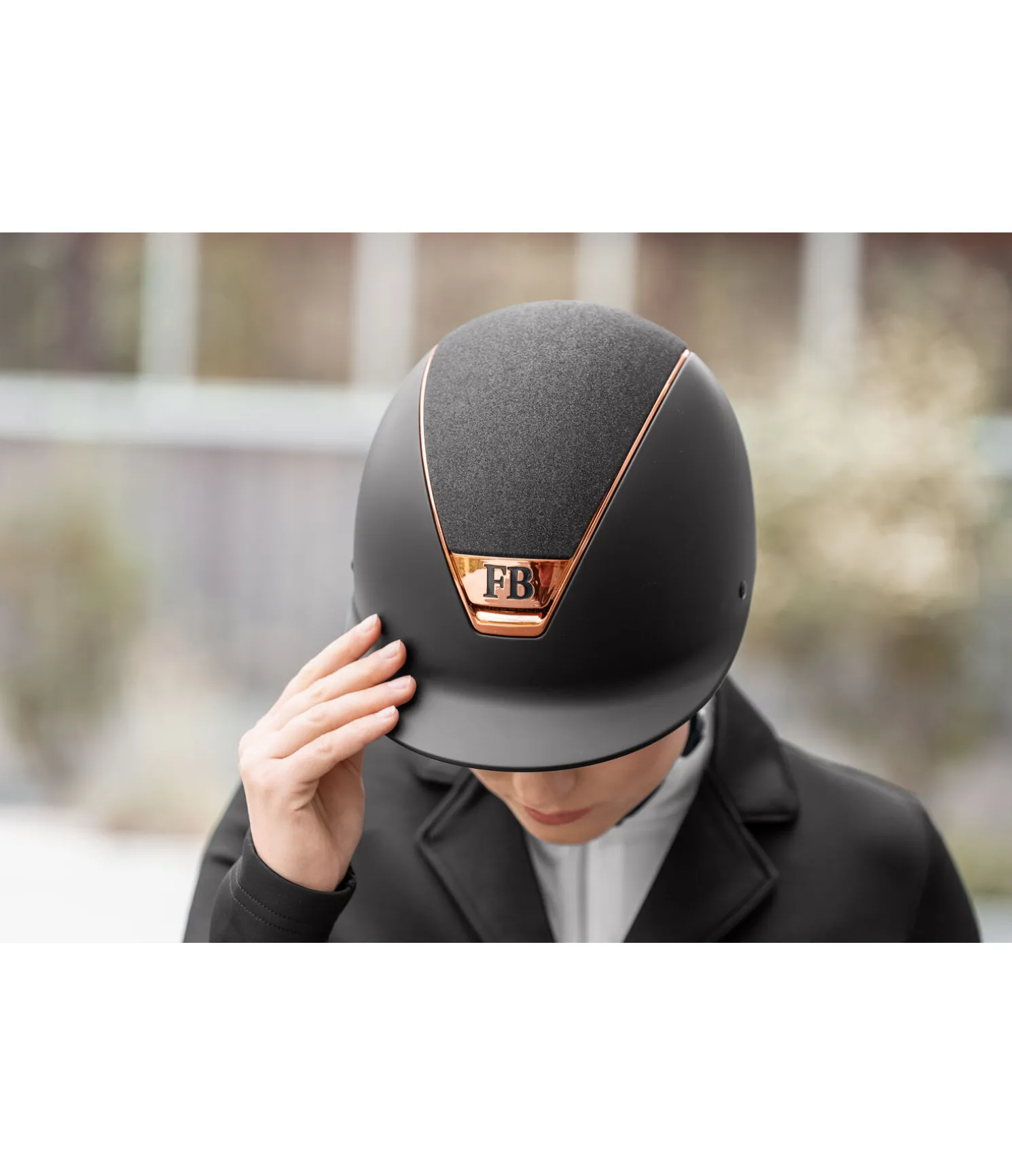 Casque d’équitation Felix Bühler haut de gamme avec décor scintillant. Pour garantir un niveau de sécurité maximal, ce casque est doté de la technologie Hardshell avec une coque extérieure résistante aux chocs. Les ouvertures à l’avant assurent une aération optimale sur l’ensemble de la tête grâce à des canaux de ventilation internes passant de l’avant à l’arrière du casque. La doublure intérieure absorbant l’humidité est amovible et lavable à 30°C. Le casque dispose d’une fermeture magnétique innovante pour une ouverture à une seule main, facile et rapide. Grâce à la fonction Easy-Lock/No-Unlock, l’aimant verrouille l’attache dès que la boucle est approchée du fermoir. L’ouverture accidentelle du fermoir en tirant ou en tournant la boucle est impossible. Celle-ci peut être déverrouillé uniquement en appuyant fermement sur le bouton Unlock situé sur le côté. La molette à l’arrière du casque offre un ajustement précis et individuel, au millimètre près, à la circonférence de la tête. Les sangles recouvertes soulignent le design raffiné du casque et disposent de coussinets au niveau de la nuque et du menton pour garantir un confort de port optimal au cavalier. Ce casque d’équitation est certifié selon la norme EN1384:2023.