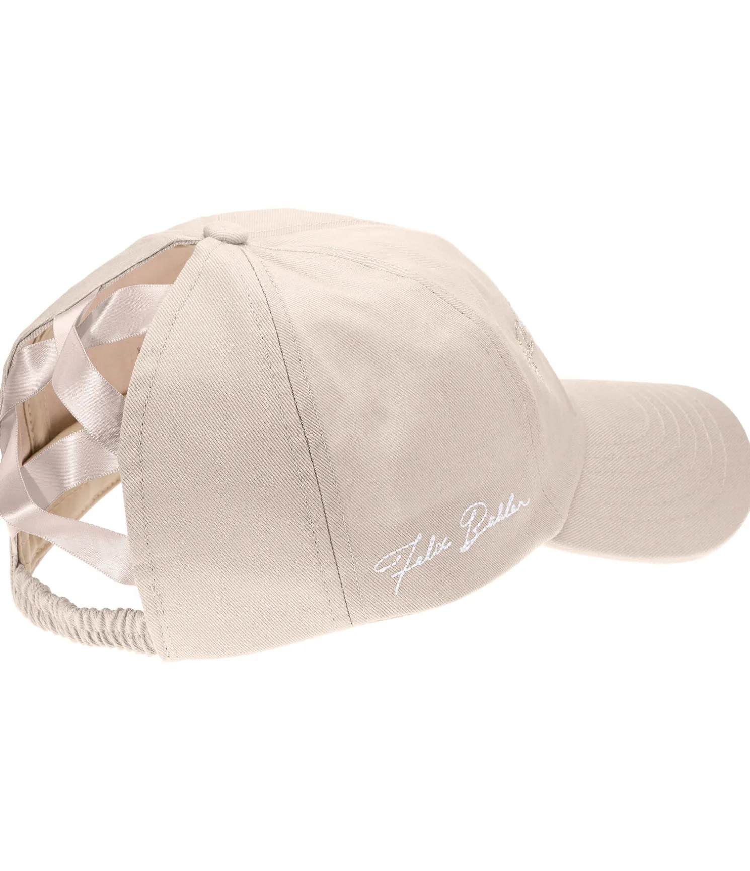 Casquette de sport brodée à l’avant et sur le côté. Bandes satinées croisées à l’arrière pour passer une queue-de-cheval à différentes hauteurs. Convient pour les cheveux très épais et les chignons. 100 % coton.