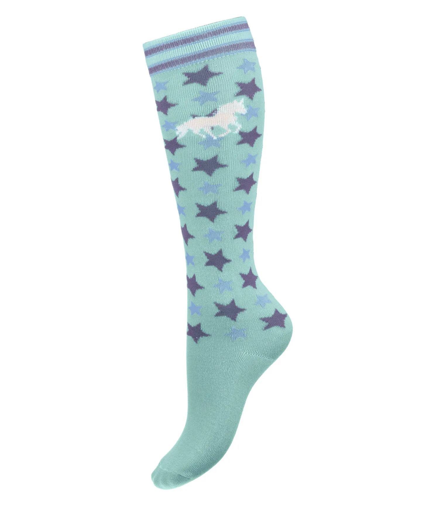 Chaussettes hautes pour enfant en design étoiles tendance avec motif cheval. 80 % coton, 20 % élasthanne.