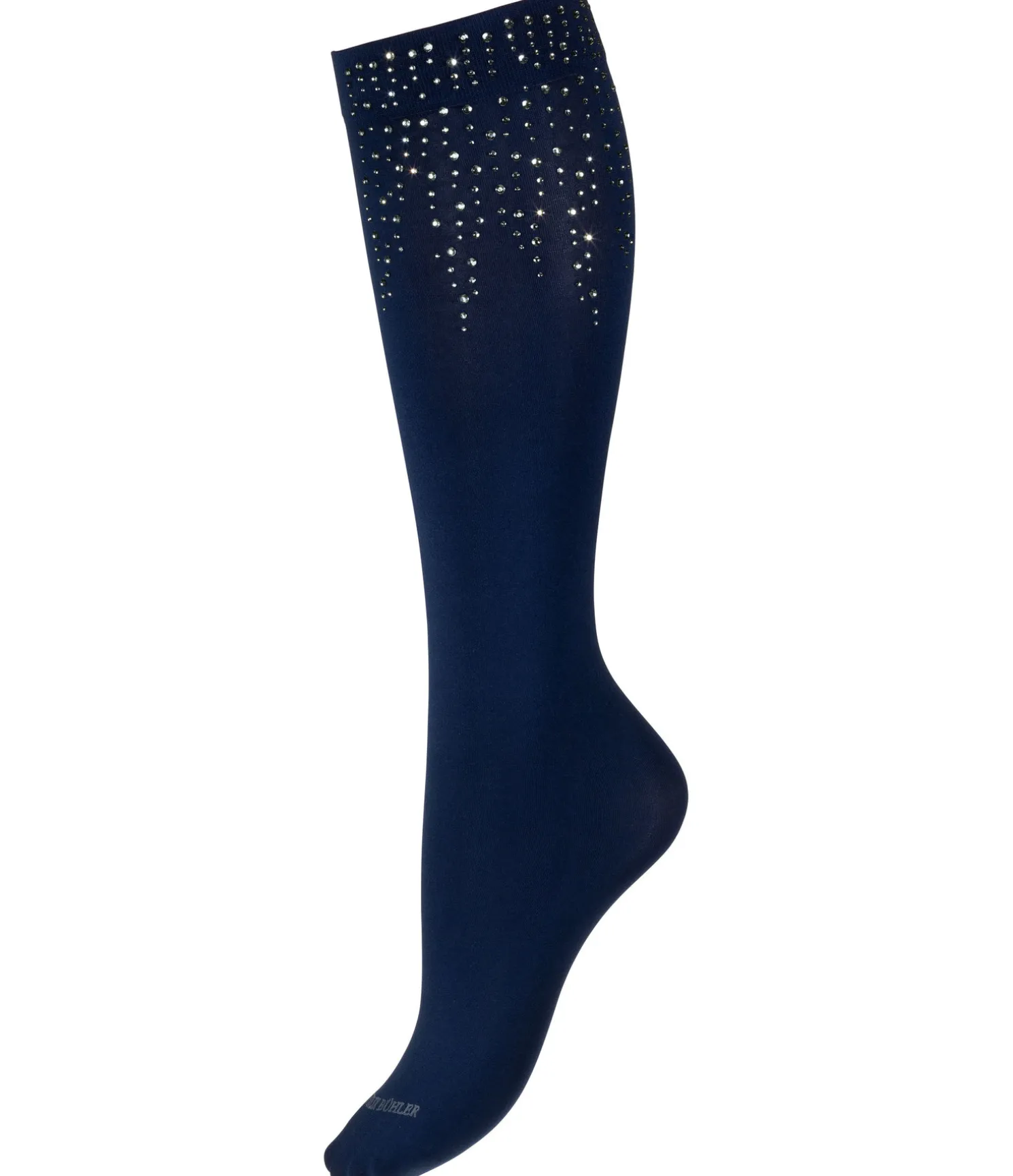 Chaussettes extrêmement fines spécialement conçues pour être portées dans des bottes d’équitation. Très élégantes grâce aux strass sur la partie supérieure. Logo Felix Bühler sur le pied. 92 % nylon, 8 % élasthanne. Taille unique.