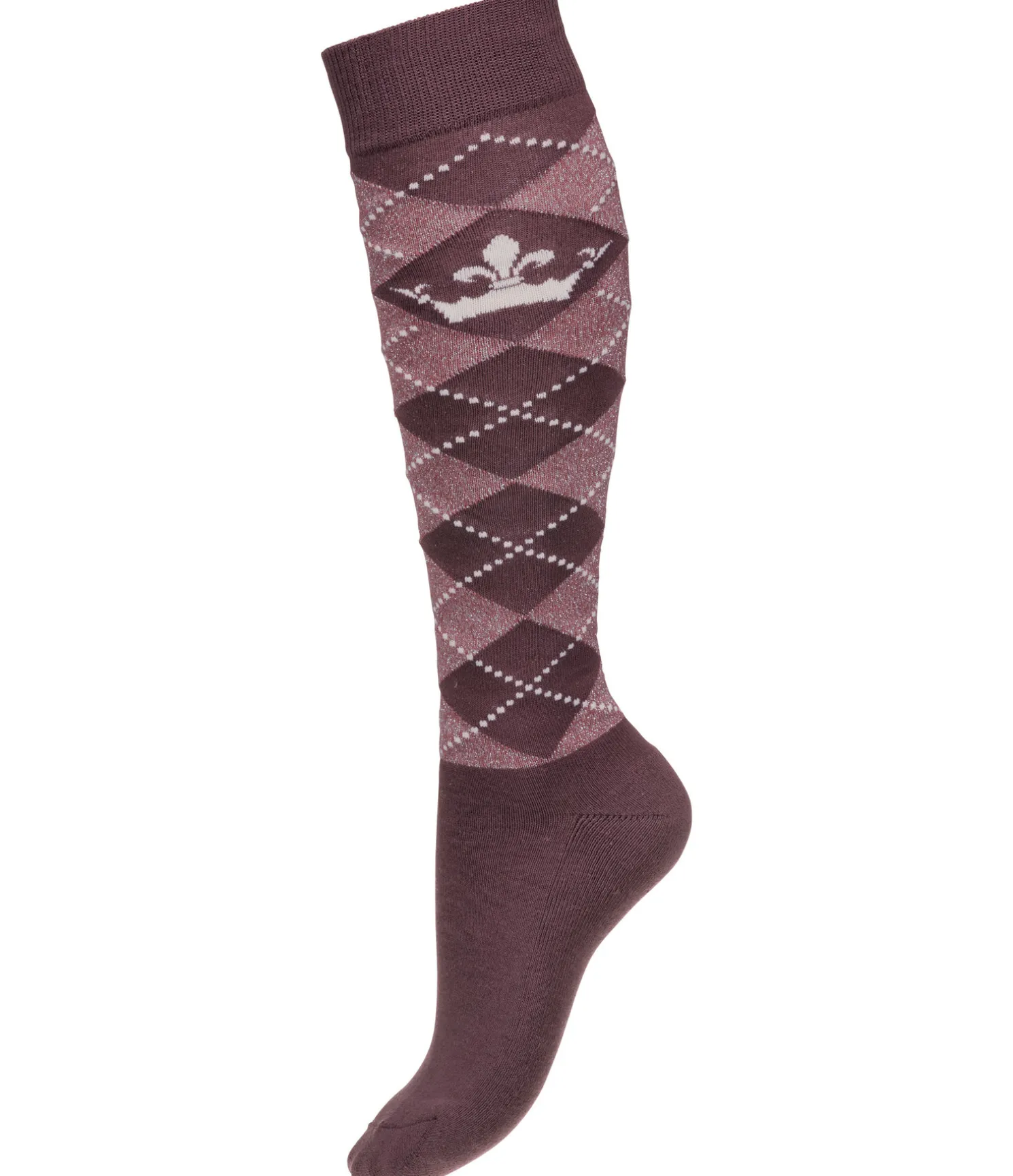 Chaussettes hautes Argyle avec fil scintillant. Haute teneur en coton pour un confort optimal. Bordure élastiquée et douce pour un maintien sûr. 72 % coton, 22 % polyester, 3 % nylon, 3 % élasthanne.