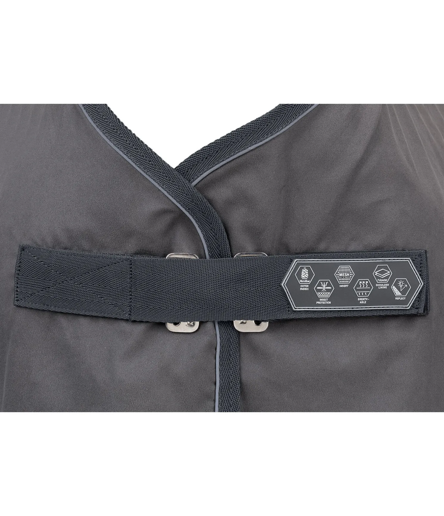 Conception innovante d’une matière en maille serrée et d’un matériau en microfibre absorbant l’humidité sur la partie supérieure du dos. Protège efficacement le cheval des mouches gênantes et des courants d’air sans pour autant être trop chaude. Combinaison parfaite pour les chaudes journées d’été avec courants d’air, lors du transport ou des concours. Fermeture de poitrail simple et rapide par crochet en T dissimulée. Sangle ventrale pour un maintien sûr. Courroie de queue réglable en longueur. Logo brodé au niveau de la croupe. 100 % polyester.