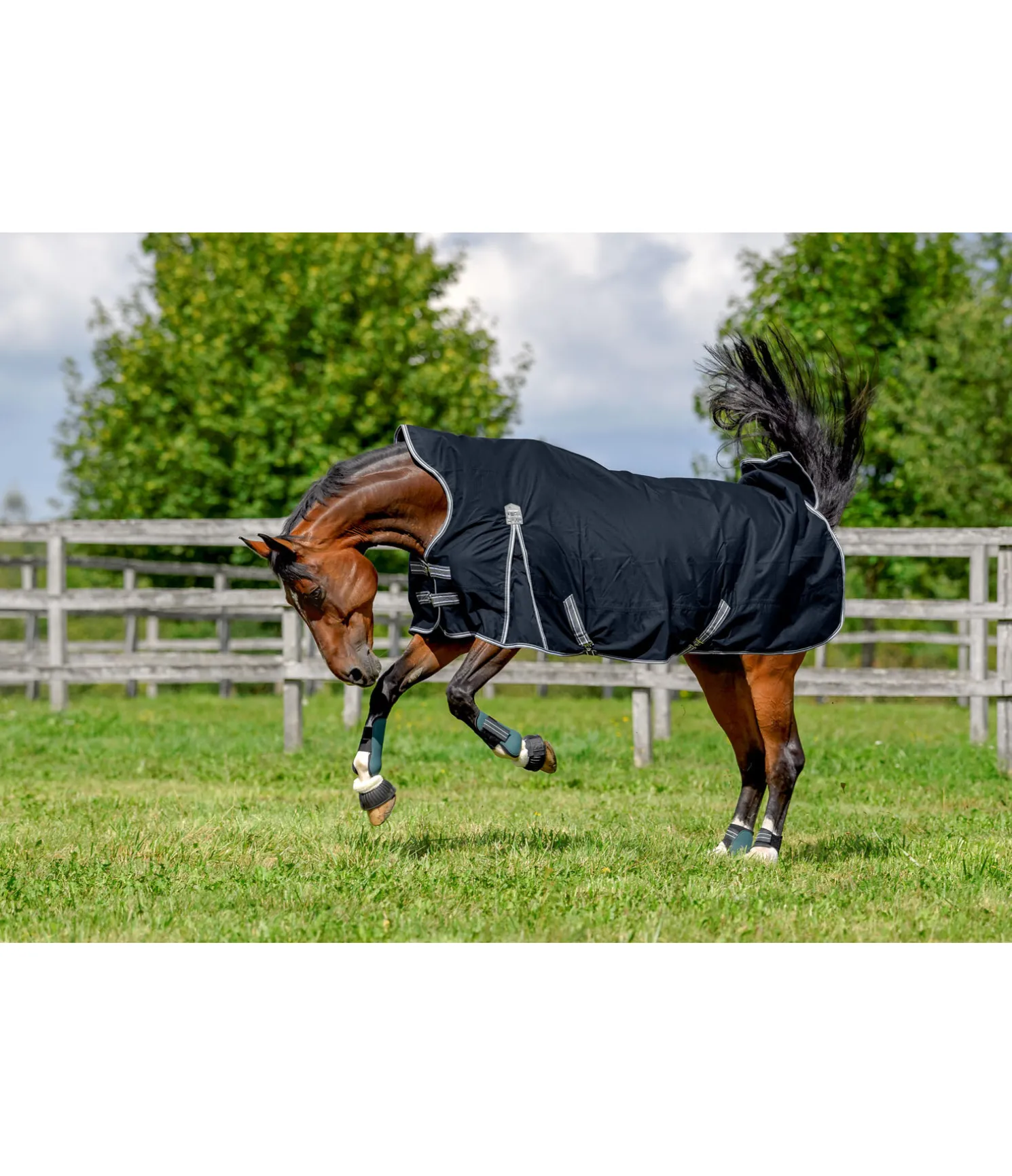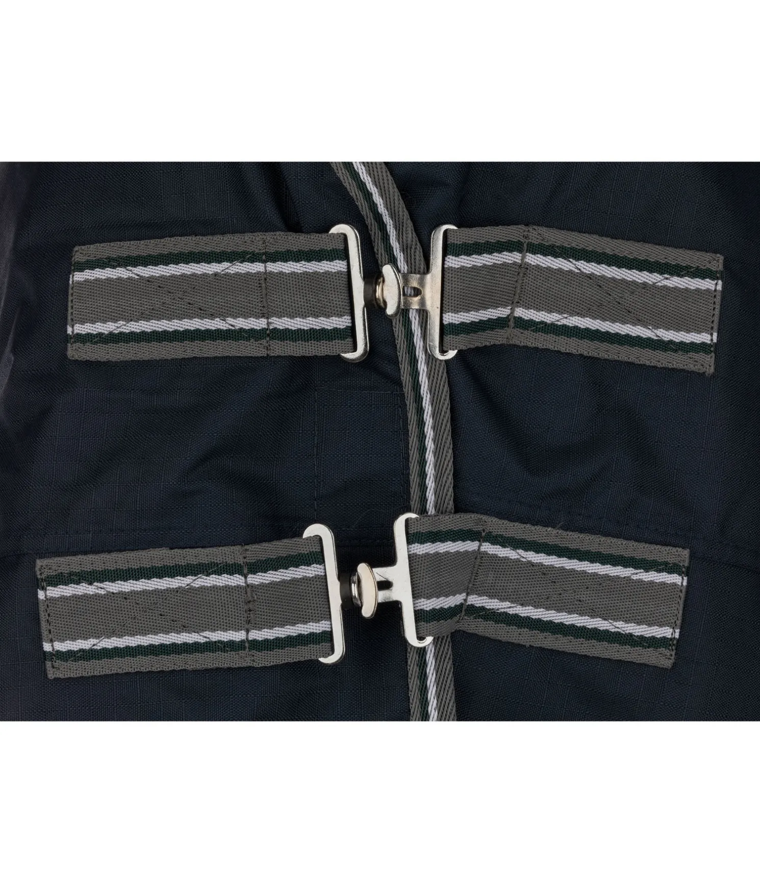 Chemise d’extérieur Highneck technique. Matière Ripstop (600 deniers) et imperméable (3.000 mm). La coupe Highneck permet d’éviter les pressions au niveau du garrot et empêche l’infiltration d’eau au niveau des épaules pour une protection efficace en cas de forte averse. Plis d’aisance pour une liberté de mouvement optimale. Double fermeture de poitrail avec crochets en T et patte auto-agrippante supplémentaire. Sursangles croisées réglables et rabat de queue. Anneaux permettant la fixation de courroies de cuisses (non incluses). Courroie de queue réglable incluse. Doublure lisse protégeant la robe. 100 % polyester.