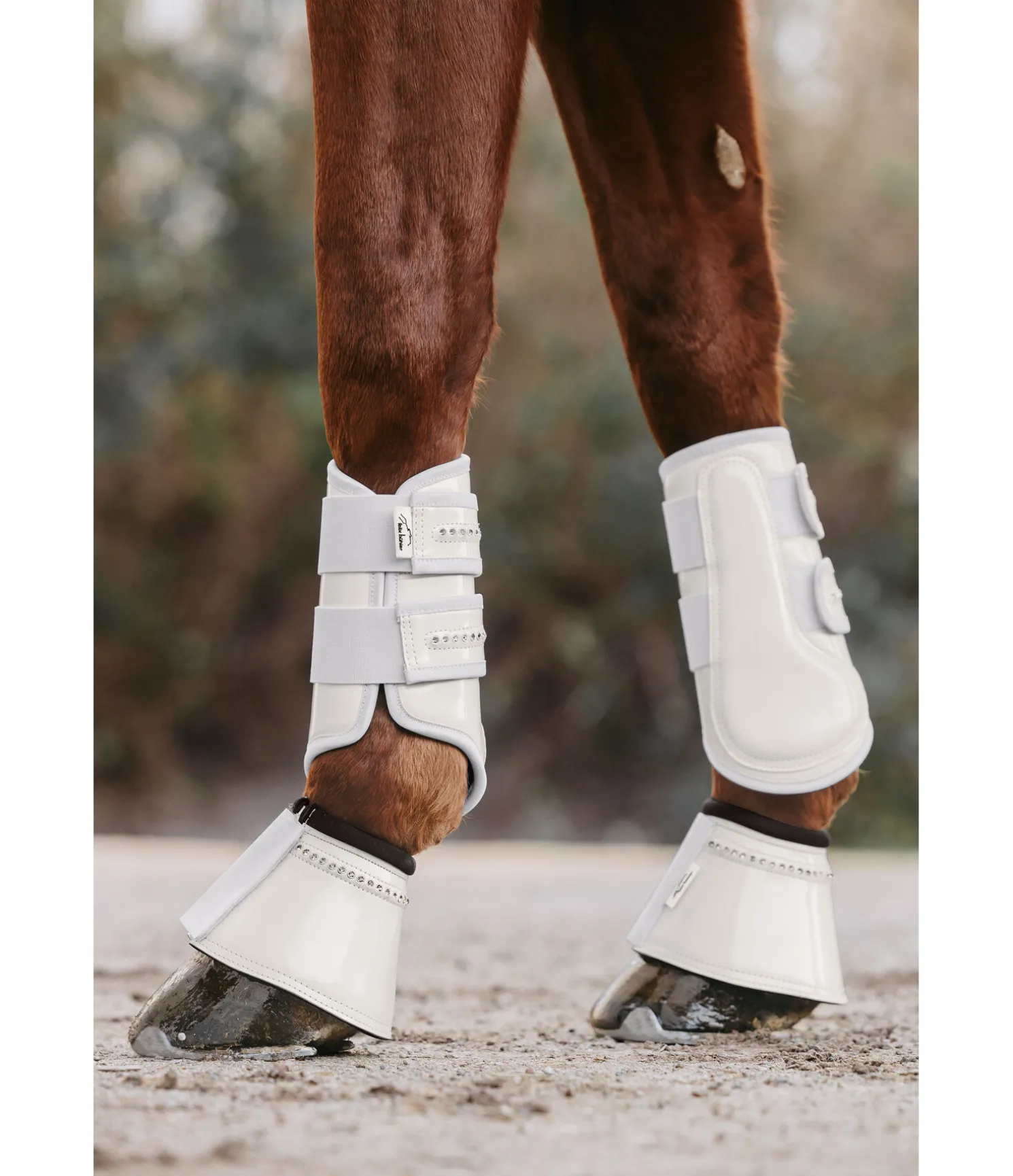Cloches élégantes assorties aux guêtres Felix Bühler Shine. En cuir synthétique à l’aspect verni. Avec strass. Doublure intérieure en caoutchouc chloroprène. Vendues par paire.