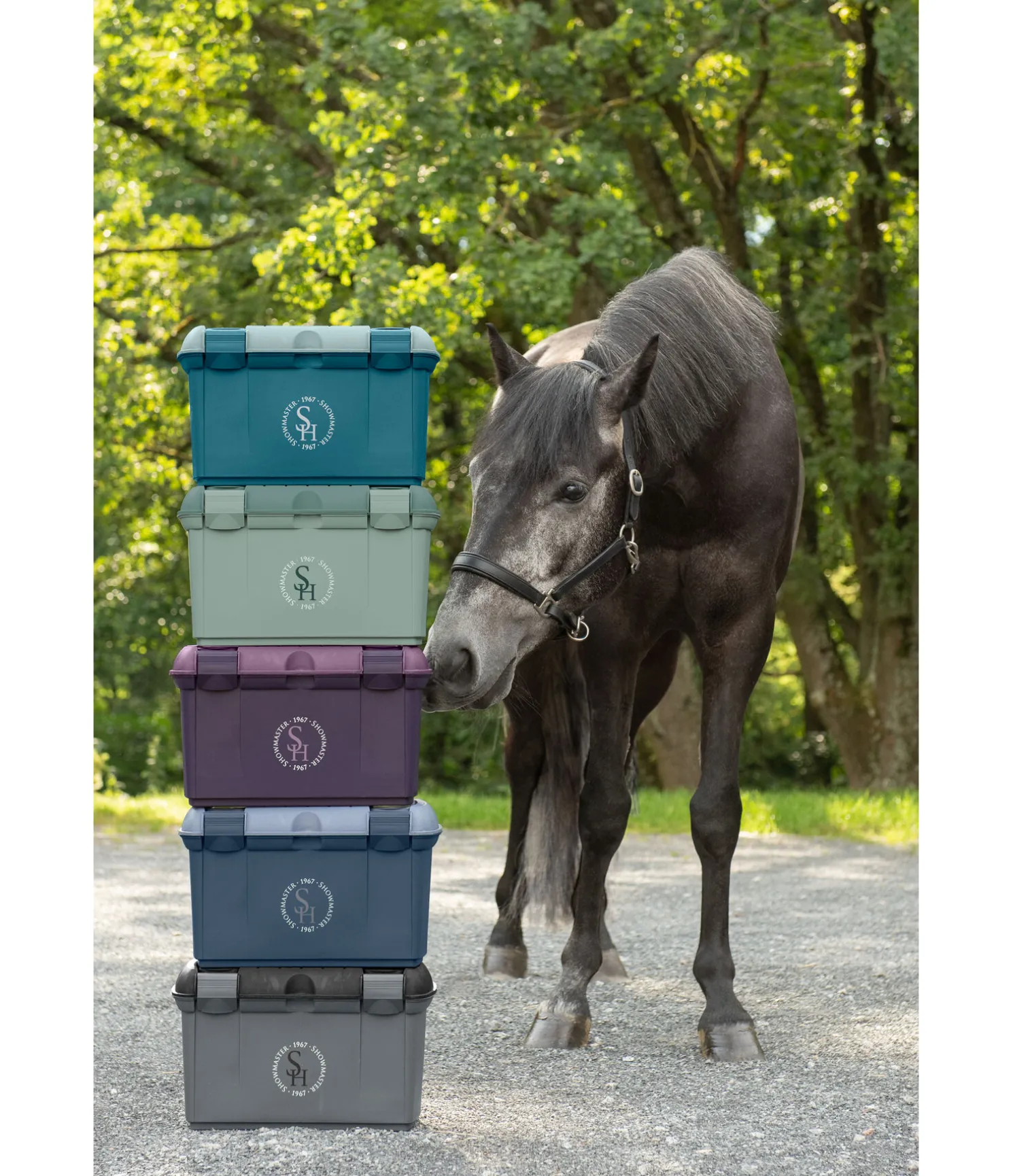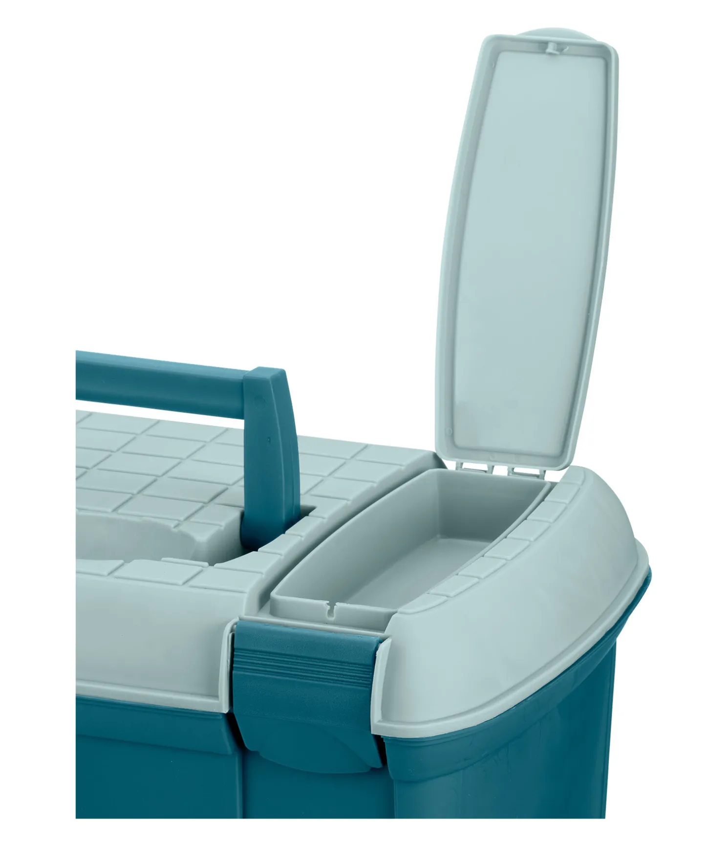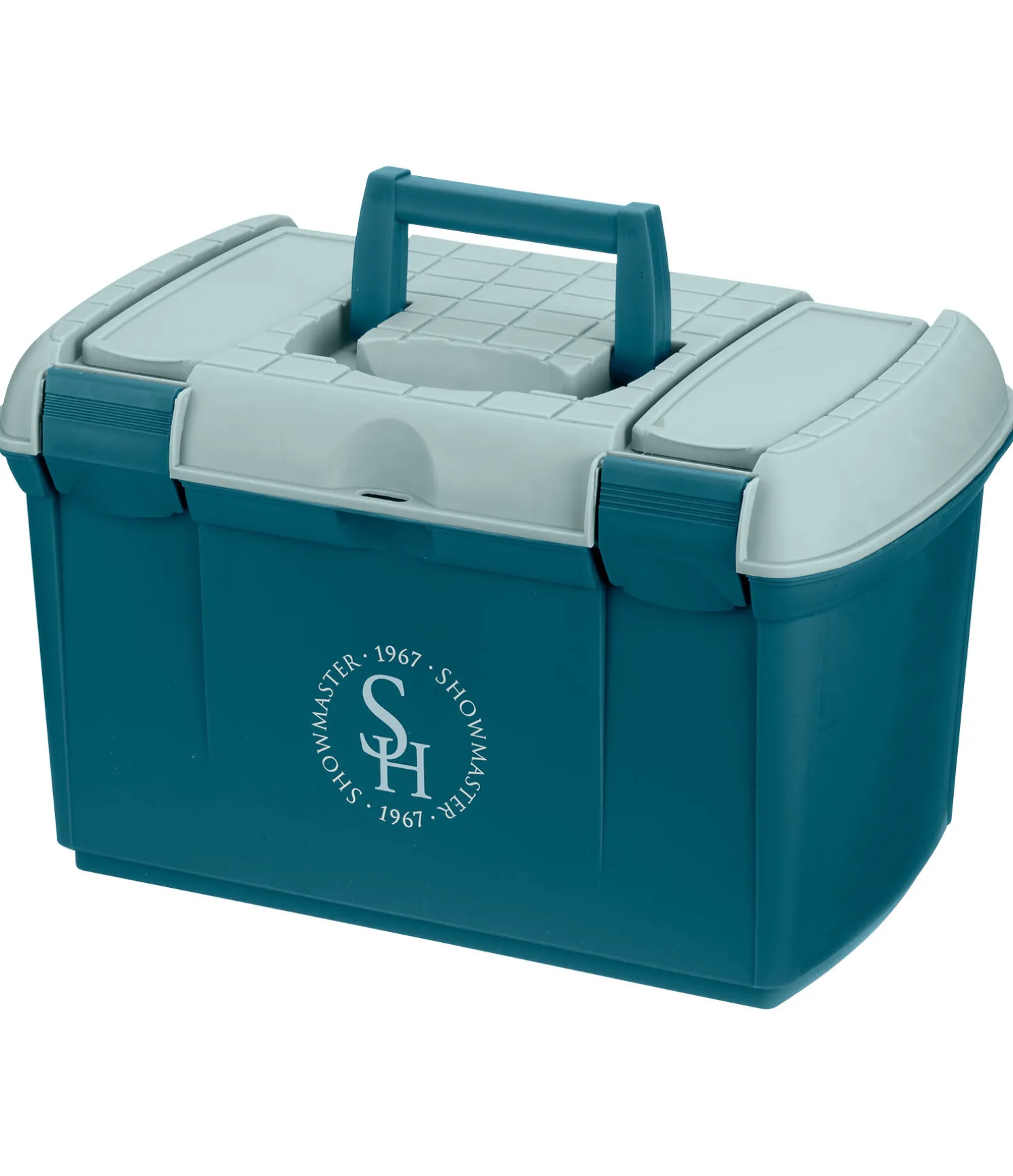 Coffre de pansage solide en plastique avec intérieur compartimenté. Compartiment pour petits accessoires amovible. Verrouillable. Cadenas non inclu. 39 x 25 x 25 cm.