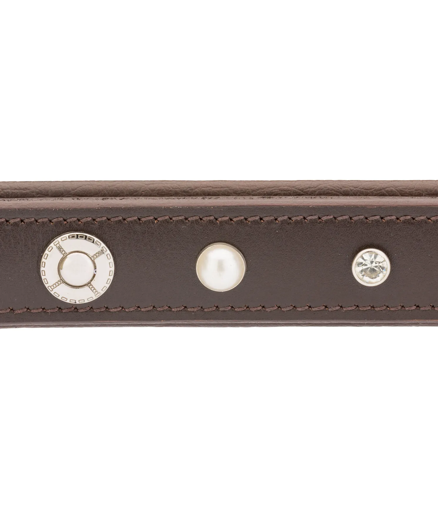 Collier en cuir véritable de grande qualité. Doublure douce pour confort optimal. Différents rivets décoratifs pour un look original. Facile à ajuster grâce à la boucle. Bouclerie argentée.