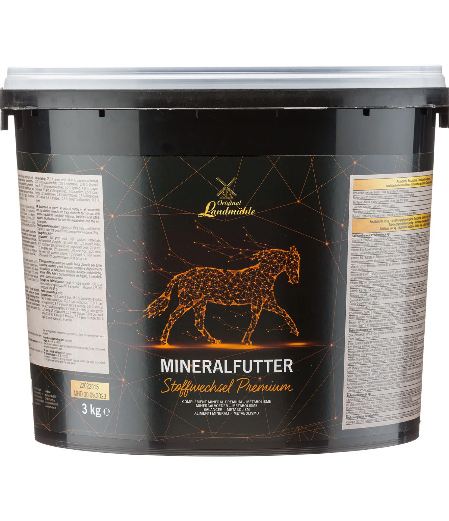Composition : 25,0 % farine d’herbe, 16,0 % carbonate de calcium, 14,0 % phosphate monocalcique, 12,0 % sel pour bétail, 10,0 % farine de lin, 6,7 % gomme de caroube, 5,0 % graines de lin, 4,0 % oxyde de magnésium, 2,0 % levure, 2,0 % graines de fenugrec, 1,5 % aronia, 1,5 % cynorrhodon, 1,0 % herbes de prairie, 0,8 % chlorure de potassium, 0,8 % huile de lin, 0,5 % fenouil, 0,5 % graines d’anis, 0,5 % feuilles de menthe poivrée, 0,3 % cannelle.