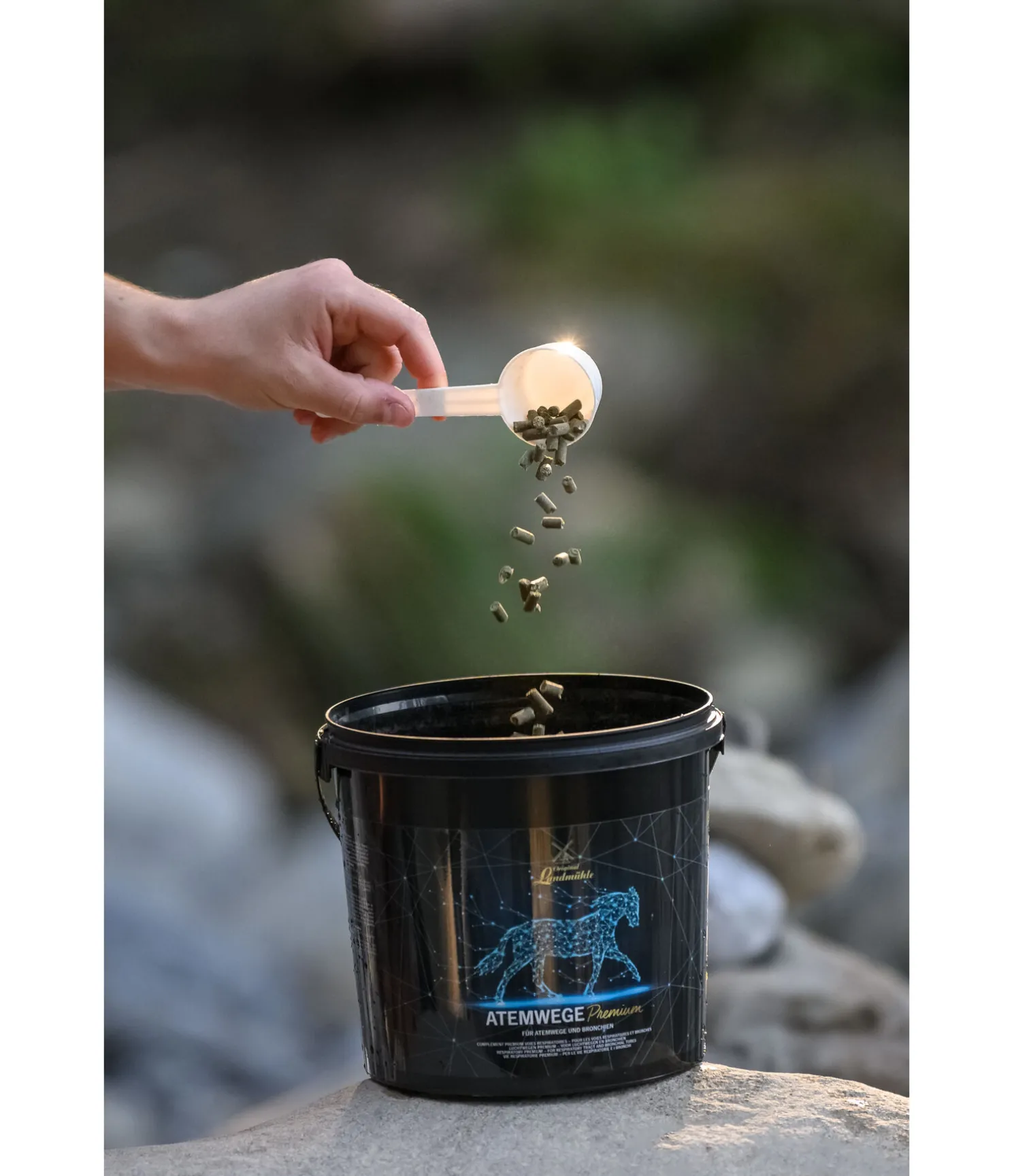 Recommandations de dosage : cheval (600 kg de poids vif) 30 g par jour. 1 mesurette (25 ml) contient environ 20 g