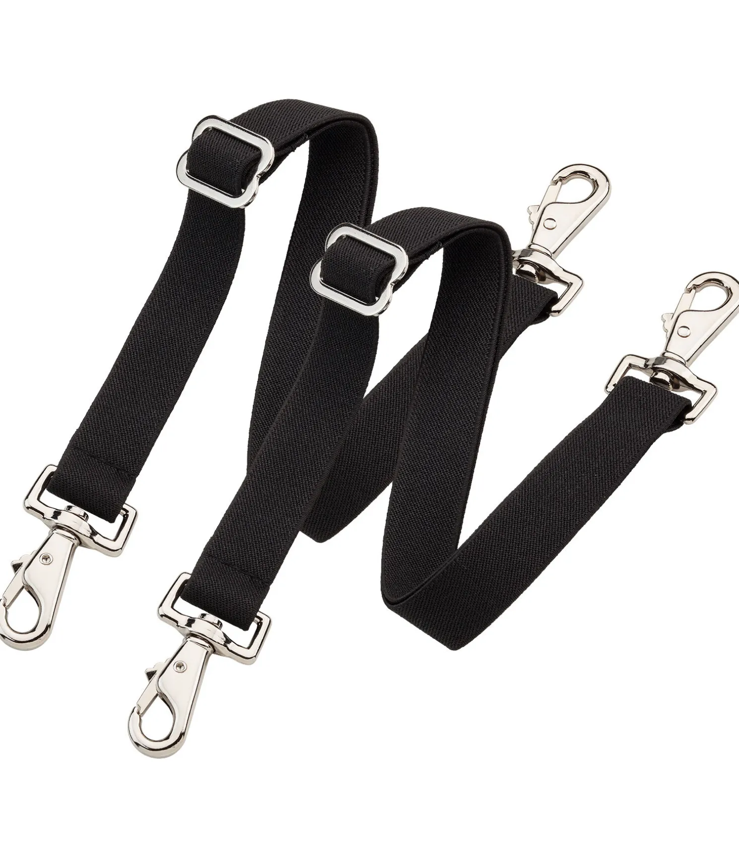 Courroies de cuisses de grande qualité extensibles et réglables. Avec mousqueton des deux côtés pour attacher à la couverture. Vendues par paire.