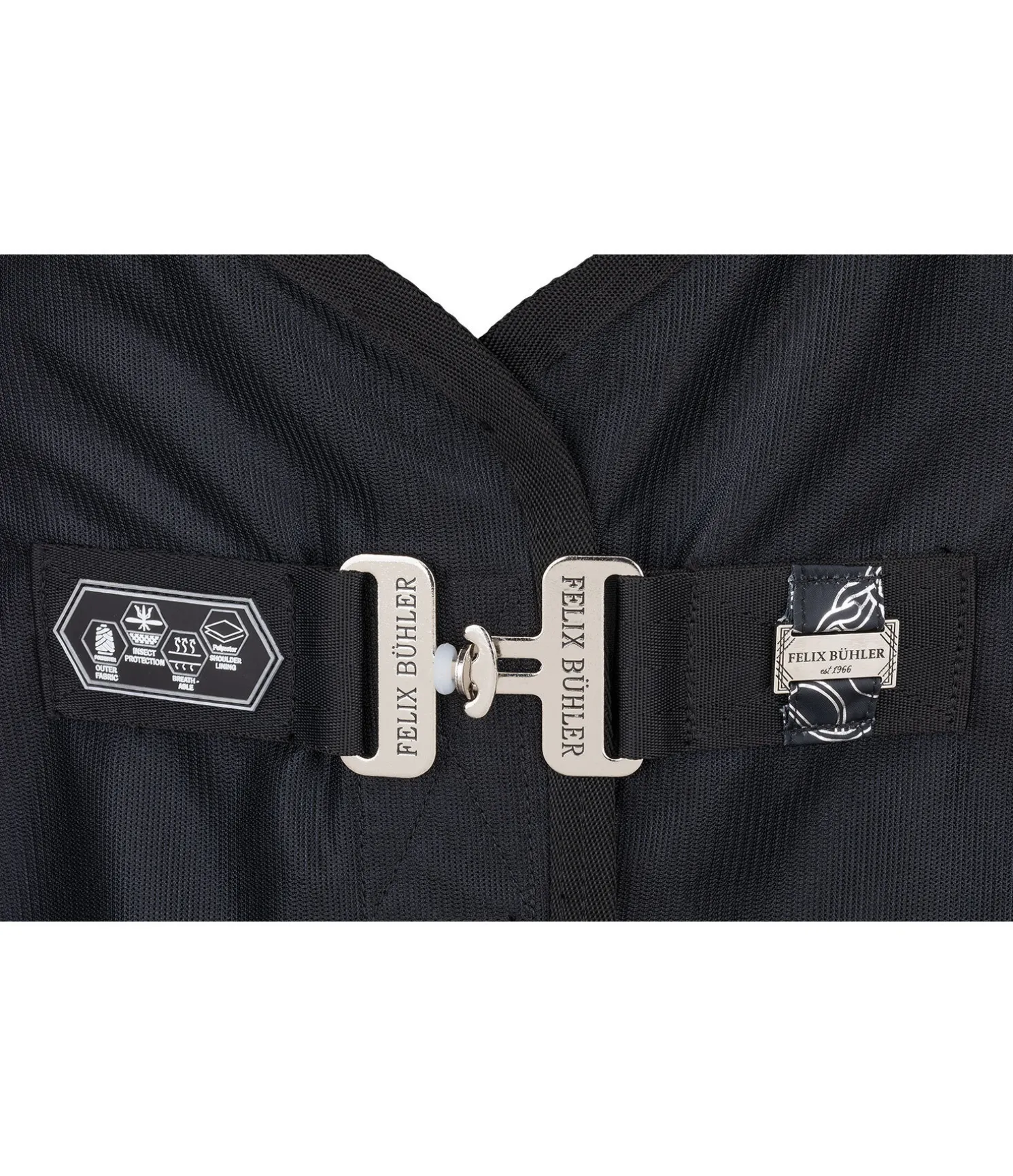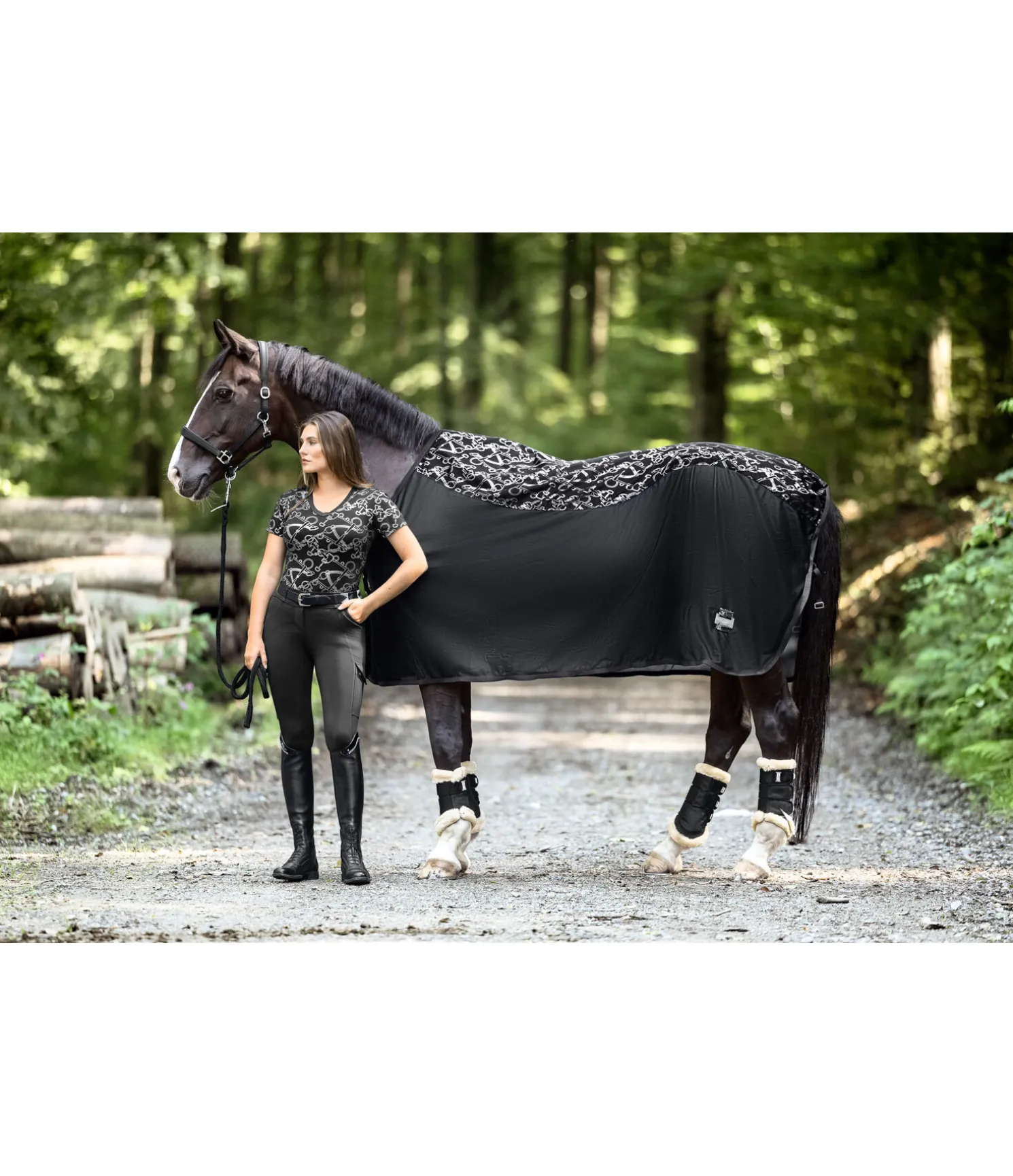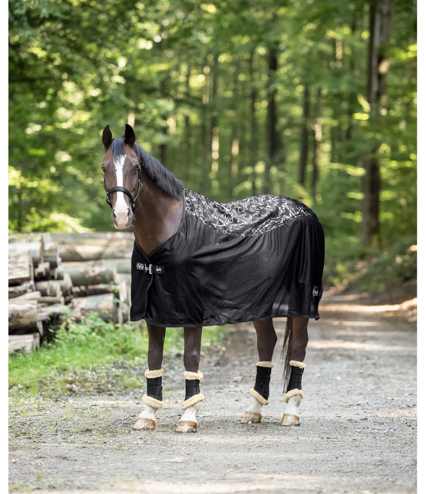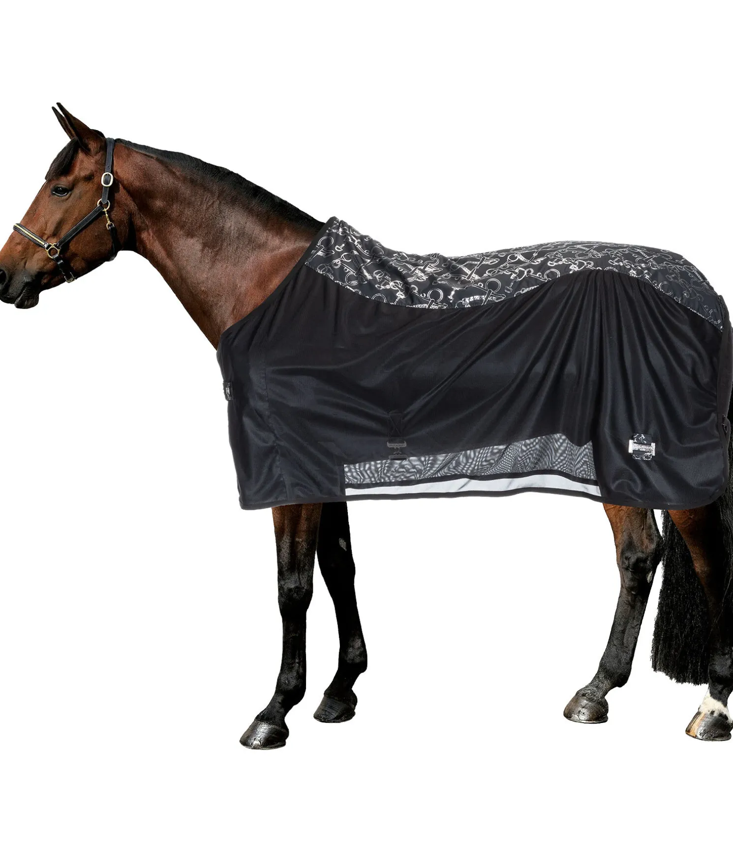 La couverture idéale pour attirer tous les regards ! Couverture chic et légère en fin tissu mesh de la collection Signature avec un imprimé all-over scintillant (reflets dorés en couleur champagne et argentés en couleur noir). L’empiècement imprimé offre une protection contre les courants d’air dans les zones sensibles du dos et des reins du cheval. Ainsi, cette couverture peut aussi être utilisée pour le transport, en concours ou pour couvrir le cheval après le travail pendant les mois d’été. Avec sangle amovible des 2 côtés, fermeture au poitrail en T simple et lanière de queue réglable. Rembourré au niveau des épaules et le long de la colonne pour protéger la robe. 100 % polyester.