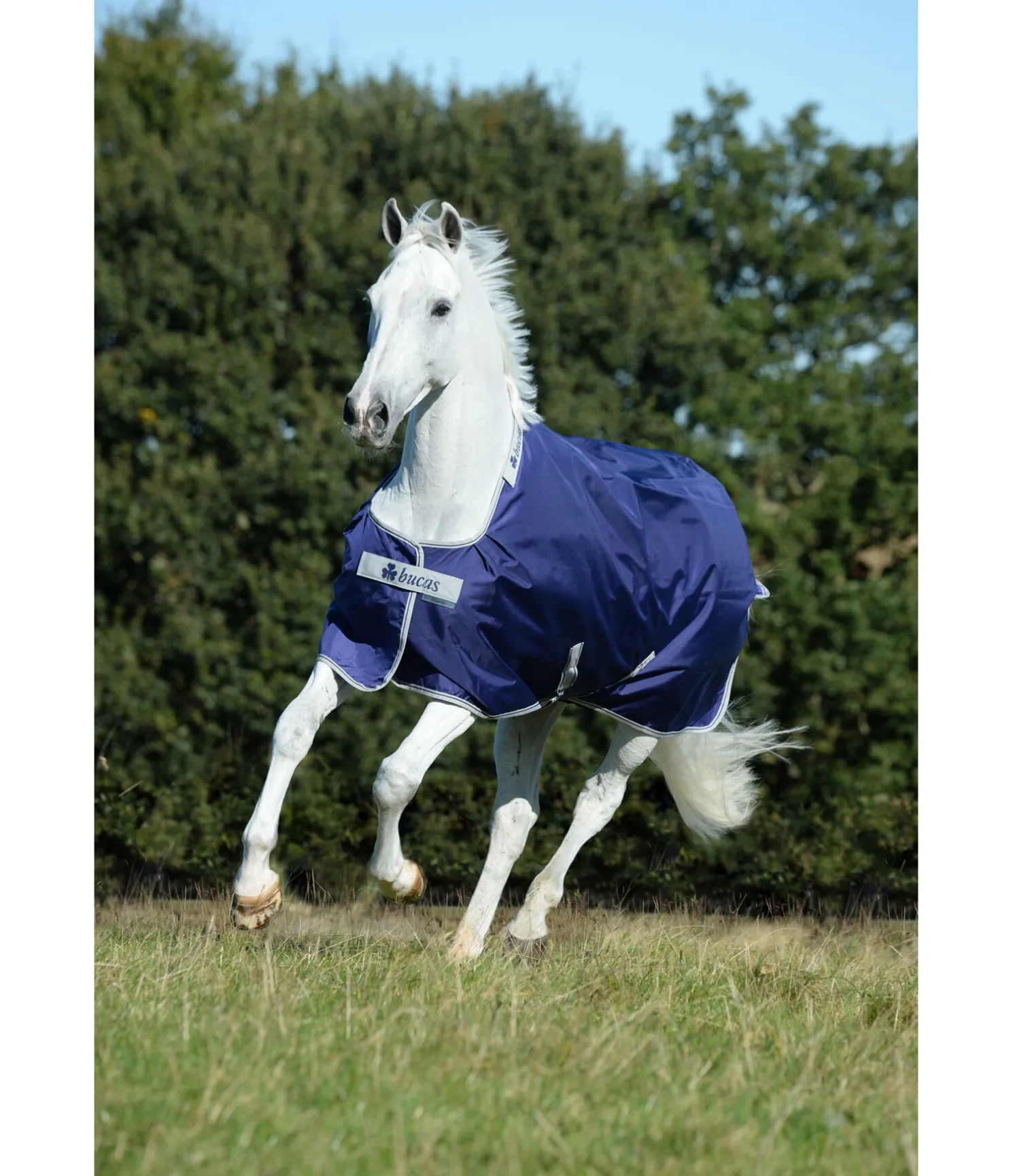 La collection Atlantic de Bucas est dotée d’un revêtement extérieur en nylon balistique (1.680 deniers) extrêmement résistant à la déchirure. La doublure « Dermo-Care » protège la robe et évacue l’humidité de manière optimale. La couverture est équipée du système Click’n Go avec fermeture magnétique, plis d’aisance supplémentaires aux épaules, sursangles croisées, courroies de cuisses, rabat de queue et courroie de queue élastique. Garnissage léger 50 g. Compatible avec la couverture Bucas Quilt. Tissu extérieur 100 % nylon, doublure intérieure 100 % polyester.