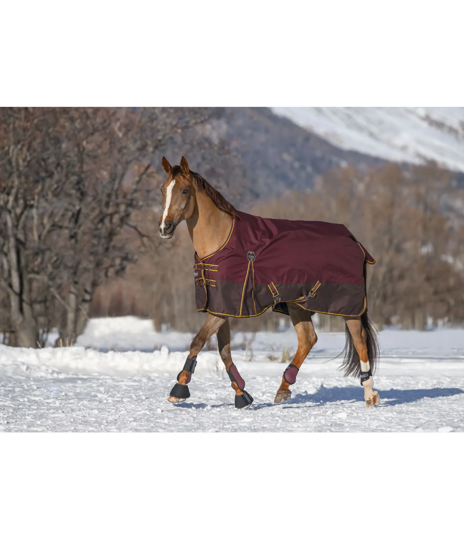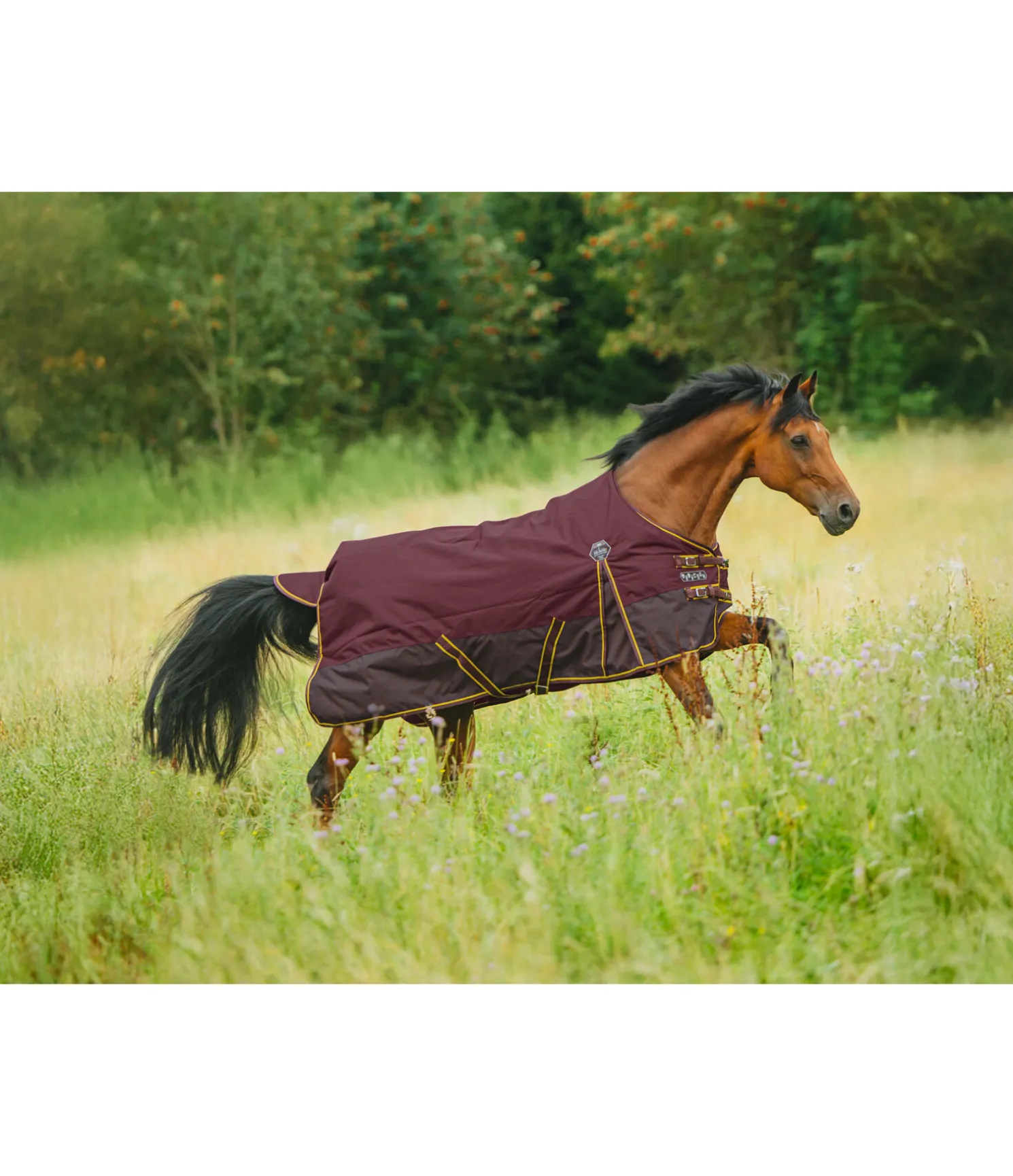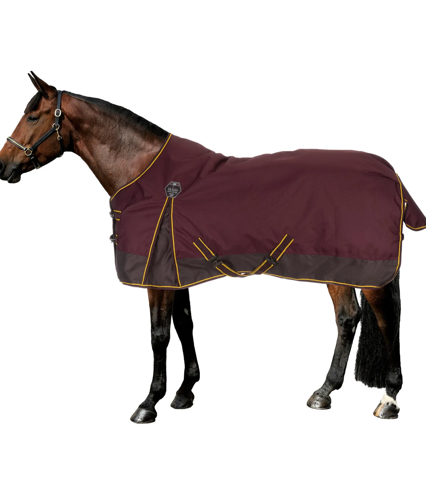 Couverture d’extérieur bicolore résistante et imperméable (3 000 mm) en matière Ripstop solide (1 200 deniers). Coussins au niveau du garrot pour le protéger et éviter les pressions. Garnissage 50 g léger. Doublure lisse protégeant la robe. Double fermeture de poitrail réglable avec mousquetons et patte auto-agrippante supplémentaire pour un maintien sûr. Grands plis d’aisance pour une liberté de mouvement optimale. Sursangles croisées, anneaux permettant de fixer des courroies de cuisses (non incluses) et courroie de queue réglable. 100 % polyester.
