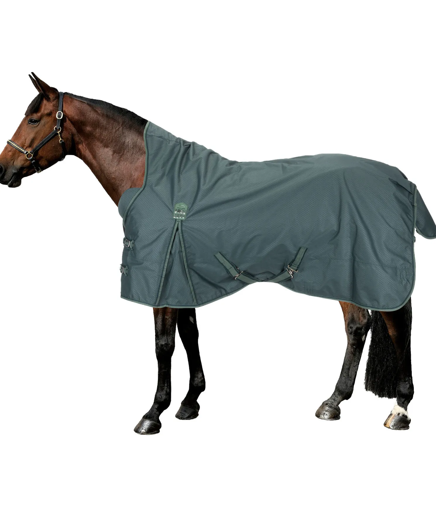 Couverture d’extérieur innovante dans une coupe Highneck, empêchant l’infiltration d’eau dans la zone des épaules et permettant d’éviter les pressions dans la zone du garrot. Coussins moelleux doublés de polaire de part et d’autre des épaules, permettant une répartition optimale des pressions lorsque le cheval baisse la tête. Matière Ripstop 600 deniers imperméable (colonne d’eau 3.000 mm) avec motifs en filigrane discrets. Garnissage 200g chaud. Doublure en polaire douce et doublure lisse protégeant la robe au niveau des épaules et du poitrail. Double fermeture de poitrail réglable avec mousquetons, anneaux en D et patte auto-agrippante supplémentaire, sursangles croisées réglables. Anneaux permettant la fixation de courroies de cuisses (non incluses), rabat de queue et courroie de queue réglable inclus. 100 % polyester.
