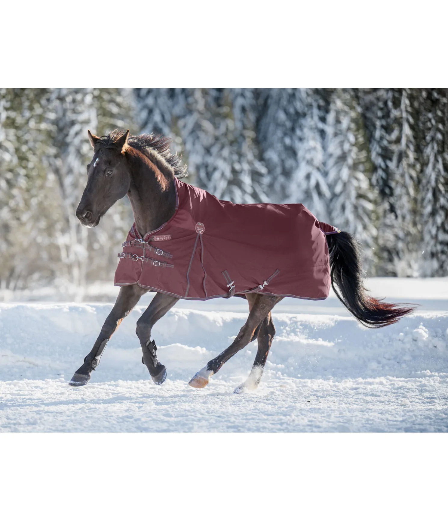 Notre best-seller ! La matière extérieure offre désormais une plus grande résistance à la déchirure et une meilleure imperméabilité pour garantir une longévité optimale avec le même confort qu’auparavant ! Couverture d’extérieur fonctionnelle dans une coupe Highneck. Matière en nylon 1 680 deniers particulièrement résistante. Grande imperméabilité (5.000 mm). Comparé au polyester, le nylon est nettement plus doux et présente des reflets satinés. Matière beaucoup plus extensible que le polyester pour une meilleure résistance à la déchirure. Sans garnissage. Inserts extensibles et déperlants softshell au niveau des épaules et de l’encolure. Grands plis d’aisance pour une liberté de mouvement optimale afin d’éviter les pressions. Rembourrage intérieur généreux pour minimiser davantage les pressions au niveau du garrot. Fermeture de poitrail réglable équilibrée en 3 points, constituée de 2 anneaux et 2 mousquetons et d’une patte auto-agrippante supplémentaire. Les mousquetons peuvent être facilement remplacés si besoin. Doublure lisse protégeant la robe. Sursangles croisées réglables et anneaux permettant la fixation de courroies de cuisses (non incluses). Courroie de queue et rabat de queue réglables en longueur avec bandes et passepoil réfléchissants sur le pourtour. Peut être parfaitement associée avec l’extension de poitrail assortie, article 422 664. Extérieur 100 % nylon, doublure 100 % polyester.