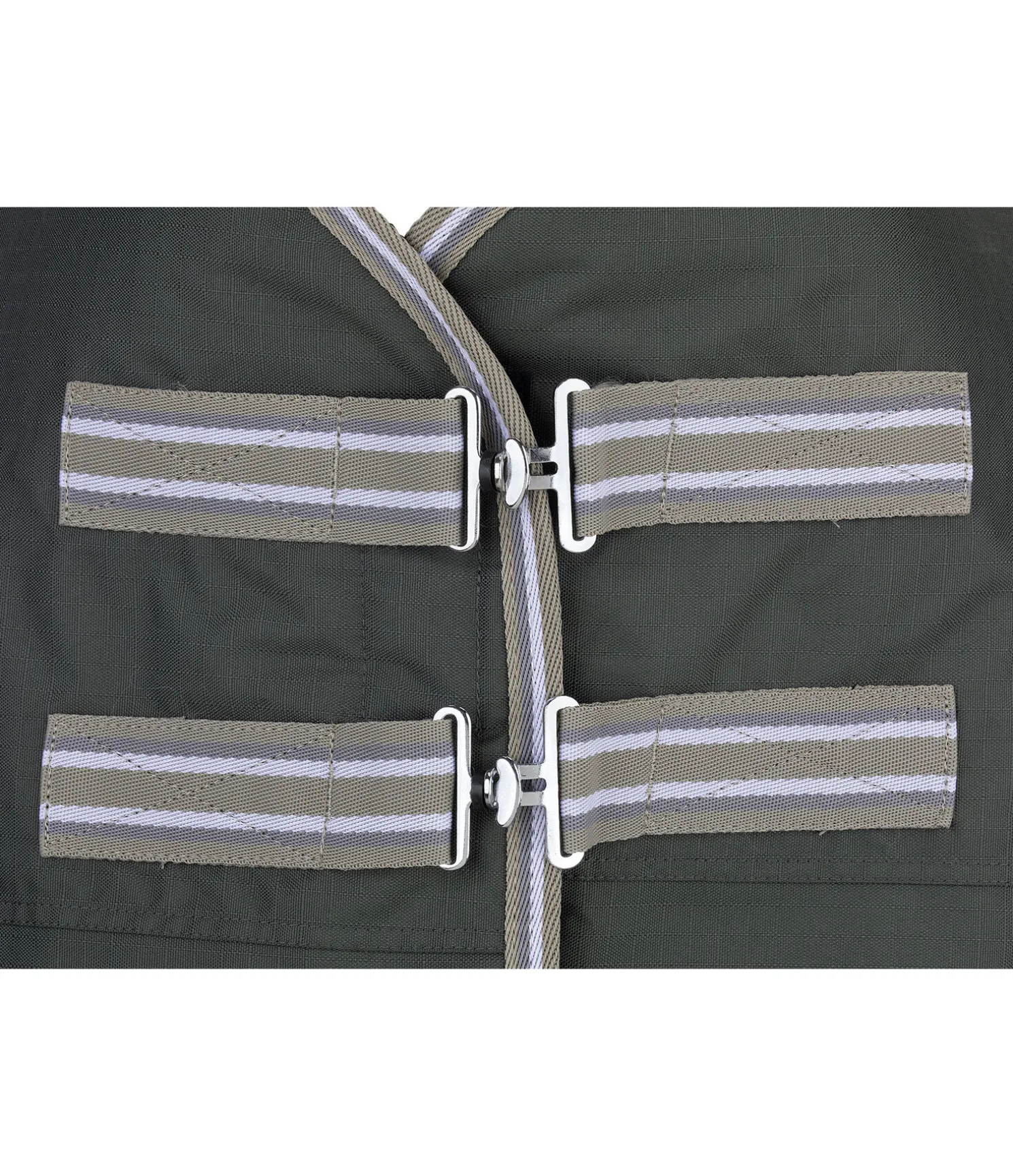 Couverture d’extérieur classique. Imperméable (3.000 mm). En matière Ripstop résistante (600 deniers) avec garnissage 50 g léger. Avec plis d’aisance pour une liberté de mouvement optimale, double fermeture de poitrail avec crochets en T et patte auto-agrippante supplémentaire, sursangles croisées réglables et rabat de queue. Anneaux permettant la fixation de courroies de cuisses (non incluses), courroie de queue réglable incluse. Pad de garrot permettant d’éviter les pressions et irritations dues aux frottements. Doublure lisse protégeant la robe. 100 % polyester.