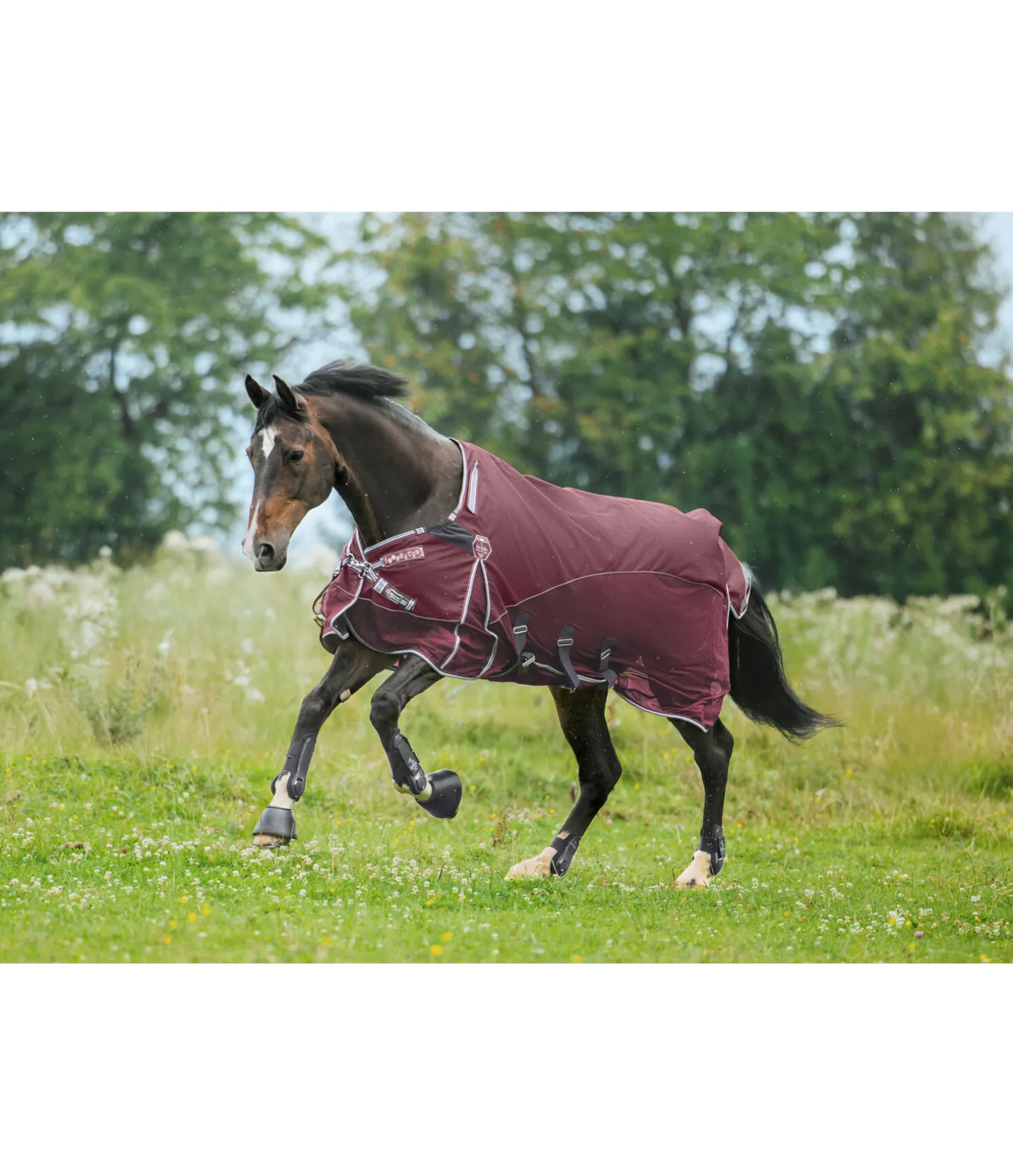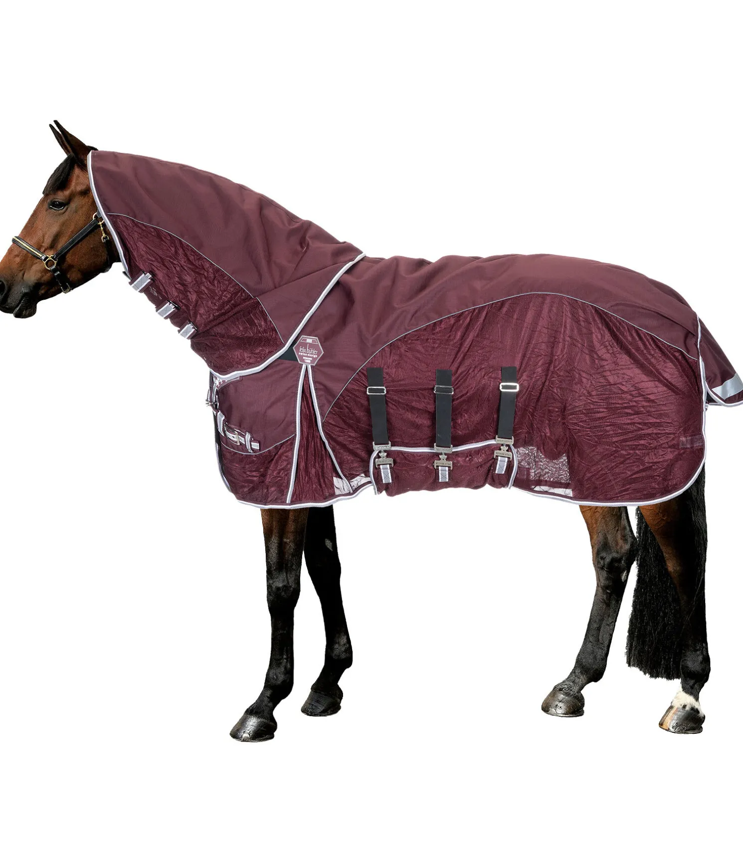 Notre collection Perfect Fit est enfin disponible en couverture anti-mouches combinée avec dos imperméable et mesh aéré sur les côtés. Couvre-cou amovible qui se ferme en toute sécurité grâce à trois pattes auto-agrippantes. La partie dorsale imperméable est en matériau Oxford 1.200D respirant et robuste (3.000 mm, coutures soudées) et est complétée par une matière mesh à mailles serrées pour une protection optimale contre les mouches. Cette couverture est idéale pour une utilisation lors des journées d’été changeantes ou pour la mi-saison, lorsque les nuits sont déjà fraîches mais que les journées sont encore très chaudes. Le dos sensible du cheval reste ainsi protégé de manière optimale, sans que le cheval ne surchauffe. Autre point fort de cette couverture, le rabat ventral peut être fermé par 3 crochets en T élastiques. L’empiècement élastiqué en softshell déperlant assure un ajustement parfait, une liberté de mouvement optimale, même au pré, et enlève à la couverture les points de pression indésirables. La double fermeture de poitrail réglable est équilibrée en plusieurs points et sa patte auto-agrippante supplémentaire maintient la couverture en place de manière fiable. Si nécessaire, les mousquetons peuvent être facilement remplacés. Bandes réfléchissantes sur le rabat de queue pour une visibilité optimale. Doublure douce pour les crins au niveau des épaules, de la crinière et du dos, ainsi qu’au niveau du rabat de queue, pour une robe brillante et une protection contre la casse des crins. Courroie de queue réglable. 100 % polyester.