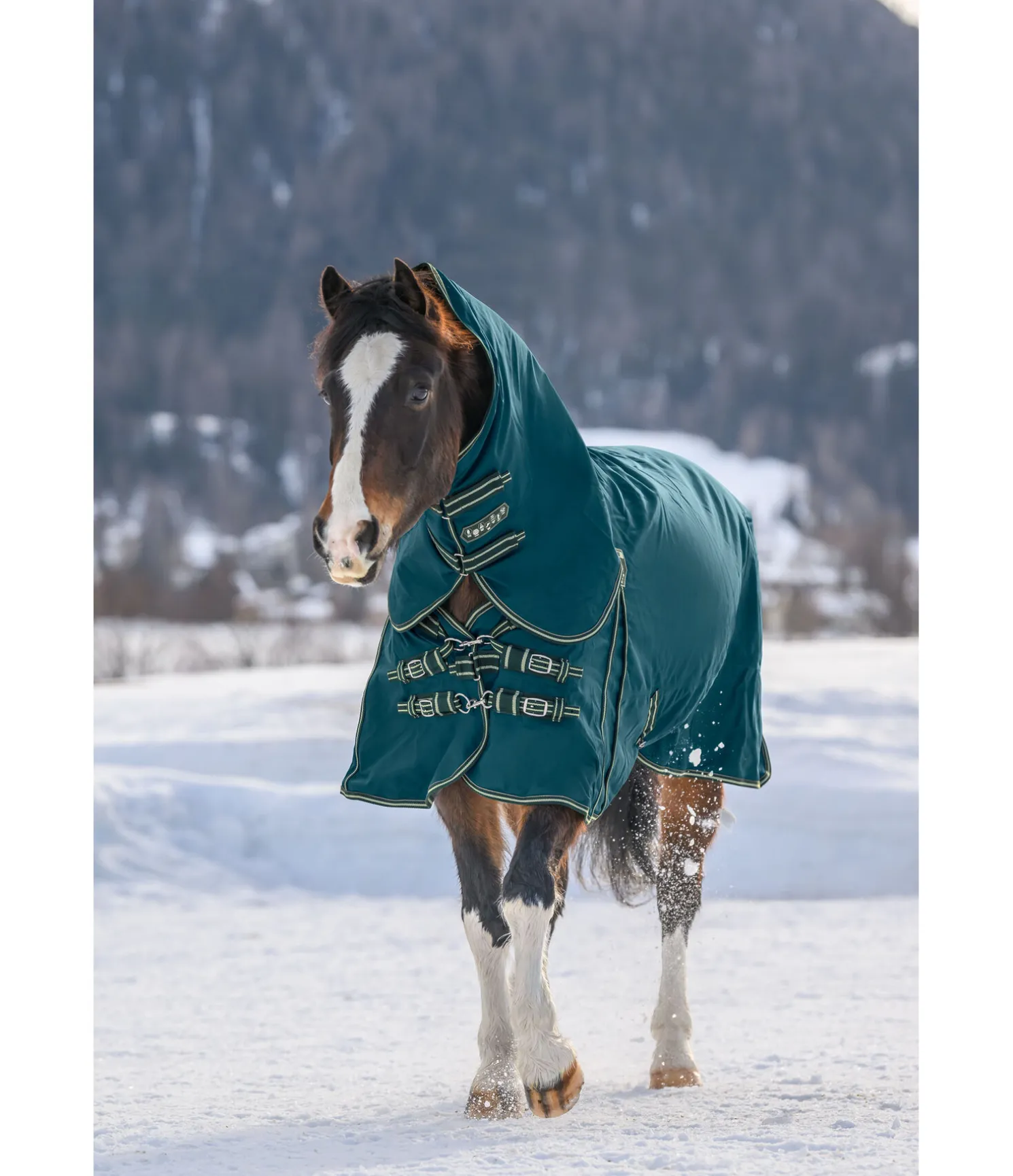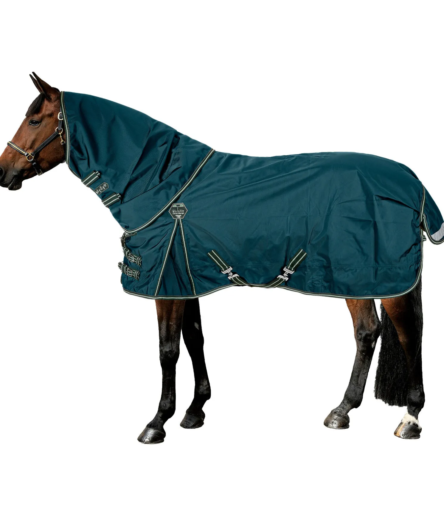 Couvre-cou adapté aux couvertures d’extérieur Perfect Fit en coupe classique (Regularneck) 422 665, 422 666, 422 667, 422698 et 422 668 pour offrir une protection intégrale au cheval. Matière 1 680 deniers particulièrement résistante et très imperméable (5 000 mm). Doublure lisse protégeant la robe. Facile à fixer à la couverture grâce aux pattes auto-agrippantes. Extérieur 100 % nylon, doublure 100 % polyester.