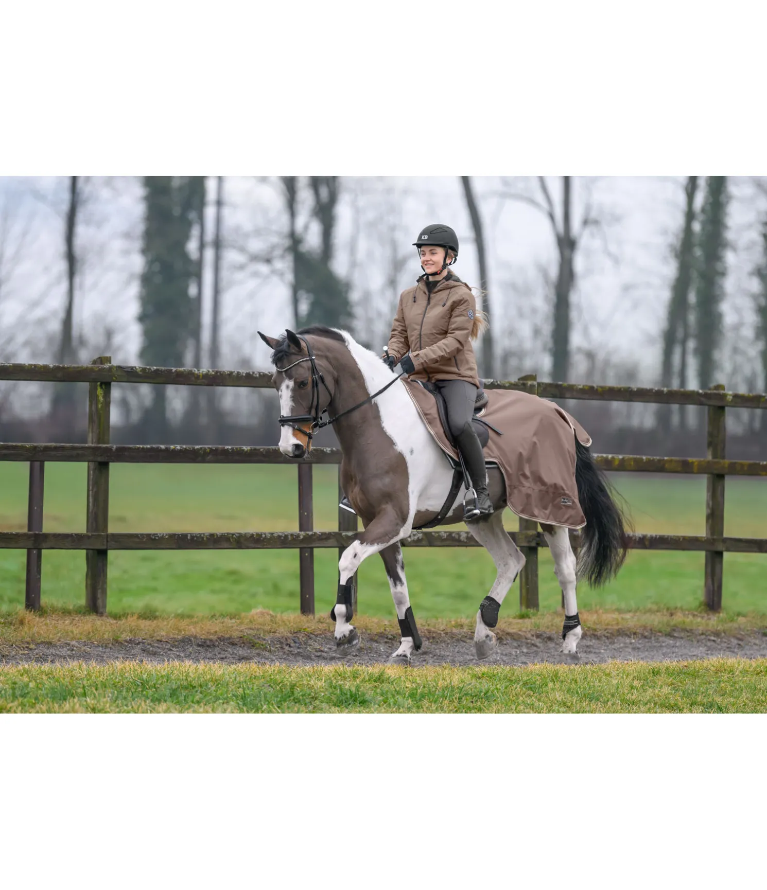 Couvre-reins imperméable (3.000 mm) et coupe-vent, en matière Ripstop 600 deniers, avec garnissage léger 50 g dans la zone des reins. Protège efficacement les reins et les flancs. Avec découpe pour selle anglaise. Large patte auto-agrippante au niveau du garrot pour une mise en place facile. Rabat de queue et courroie de queue réglable inclus. 100 % polyester.