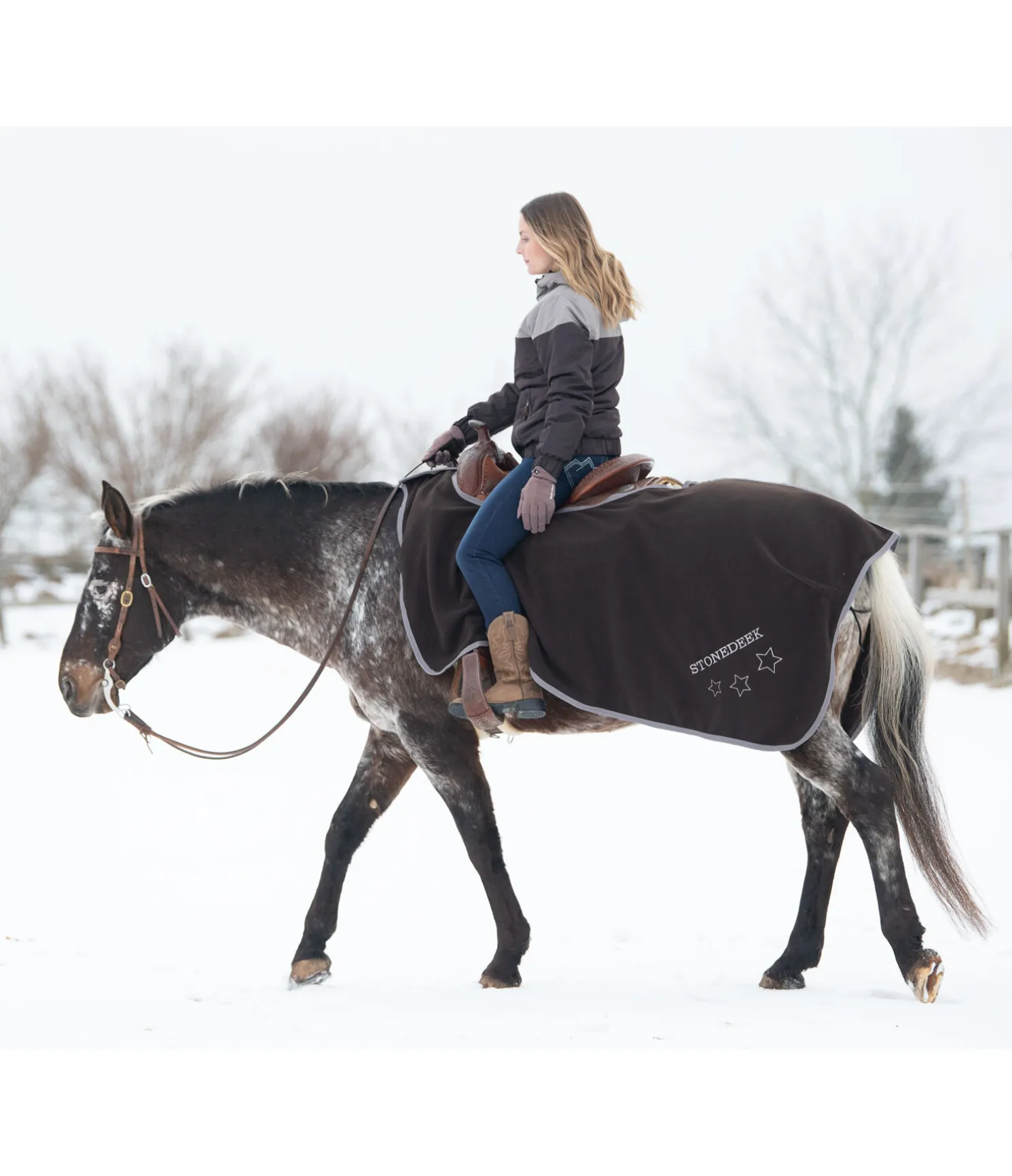 Couvre-reins basique pour selles western. Matière polaire douce, technique et chaude ornée d’une jolie broderie. Fermeture simple par patte auto-agrippante. 100 % polyester