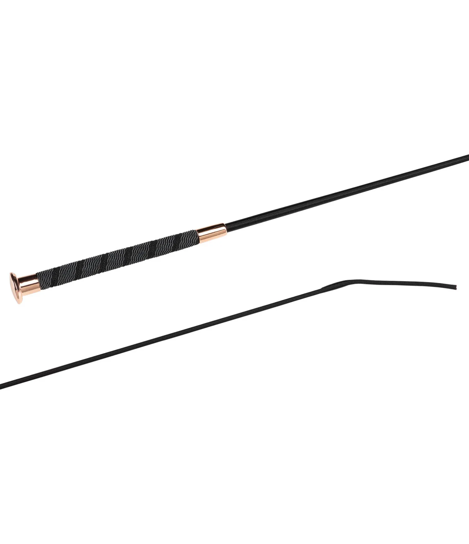 Cravache de dressage avec poignée antiglisse en caoutchouc. Large pommeau argenté, rose doré ou noir mat. Envoi dans un colis séparé.