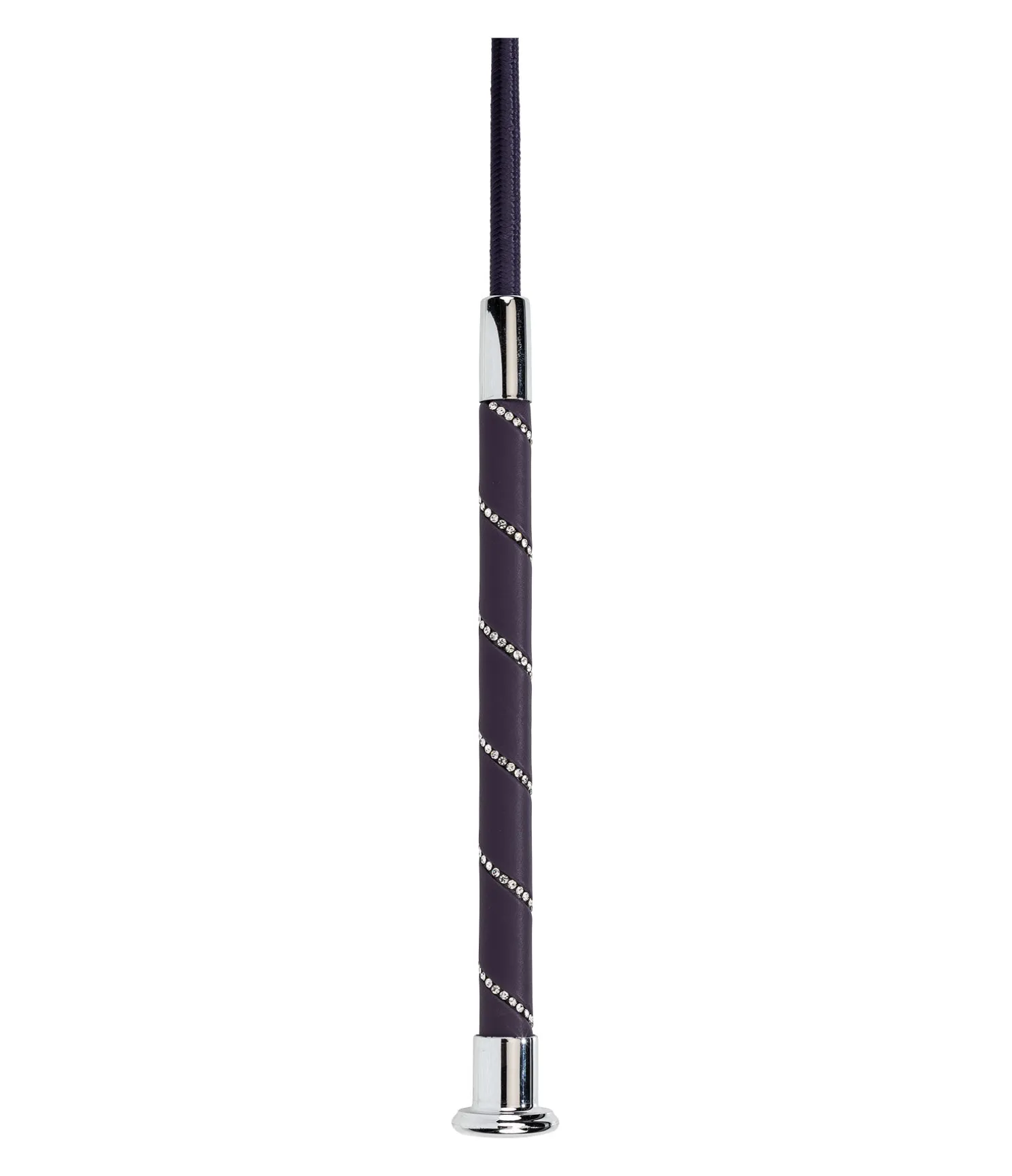 Cravache de dressage tendance avec poignée pailletée ornée de strass. Tiige en fibre de verre recouverte de nylon.