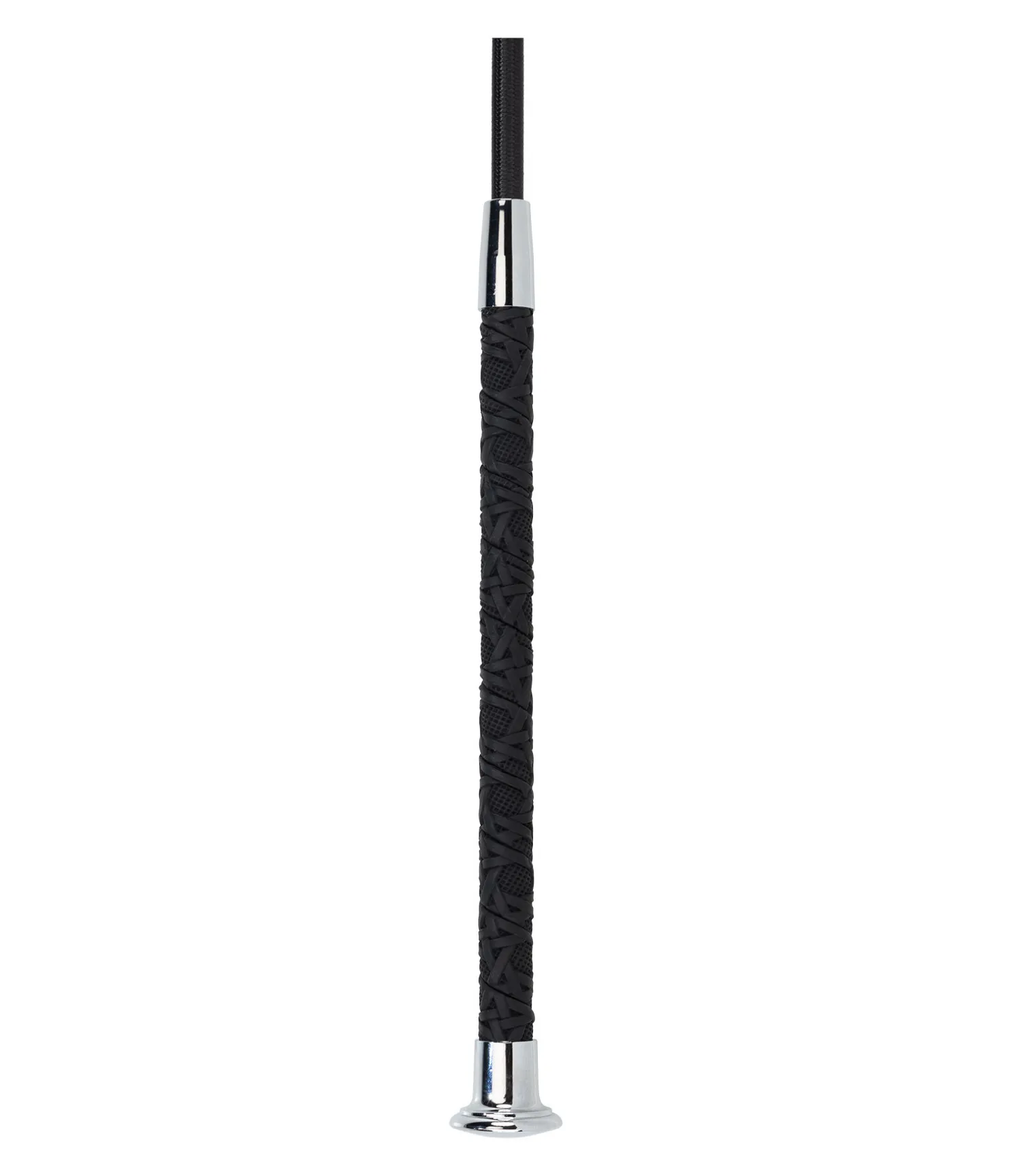 Cravache de dressage avec poignée antidérapante en aspect dentelle. Tige en fibre de verre avec revêtement en nylon.