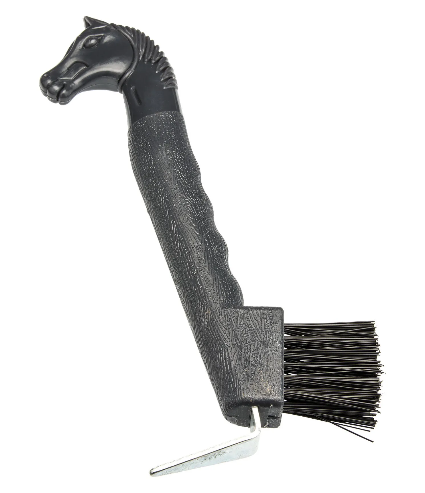 Cure-pied robuste avec tête de cheval qui ne doit manquer dans aucune boîte de pansage. Le poinçon en métal est extrêmement robuste et ne se plie pas. Si vous devez ôter une pierre coinçée entre le sabot et le fer, l’angle d’origine peut être facilement restauré. Les poils de la brosse sont pratiques et intégrés. Ils ne s’effilochent pas et conservent leur forme longtemps. En plus des nombreux coloris disponibles, le cure-pied brosse séduit par son excellent rapport qualité-prix.
