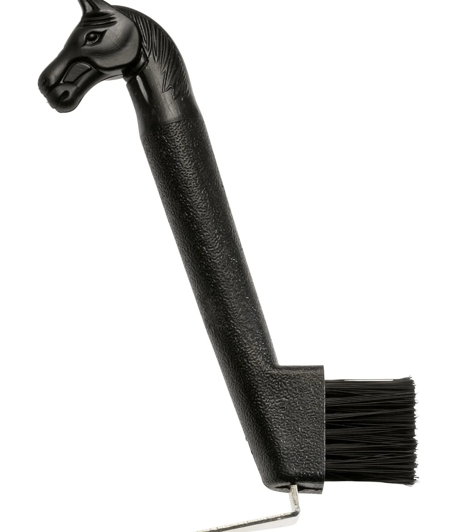 Cure-pied robuste avec tête de cheval qui ne doit manquer dans aucune boîte de pansage. Le poinçon en métal est extrêmement robuste et ne se plie pas. Si vous devez ôter une pierre coinçée entre le sabot et le fer, l’angle d’origine peut être facilement restauré. Les poils de la brosse sont pratiques et intégrés. Ils ne s’effilochent pas et conservent leur forme longtemps. En plus des nombreux coloris disponibles, le cure-pied brosse séduit par son excellent rapport qualité-prix.